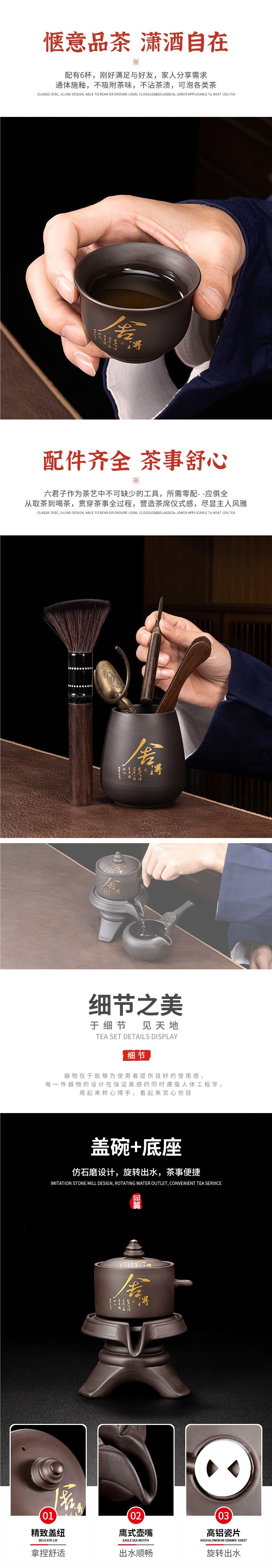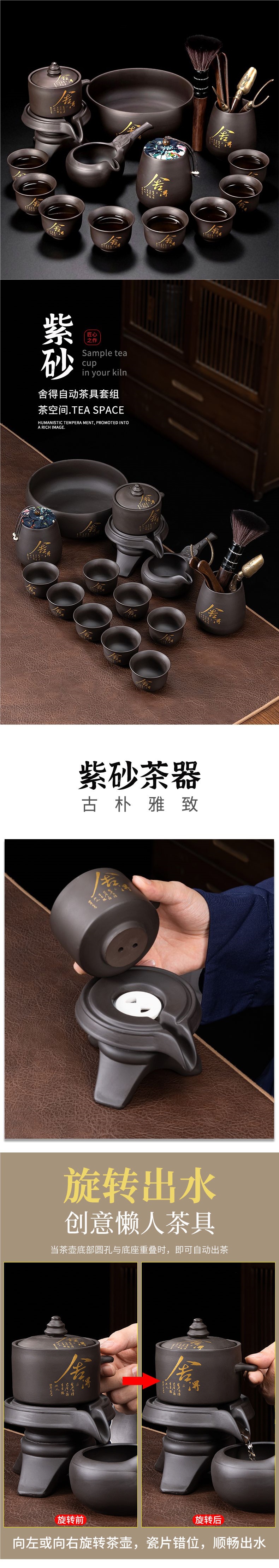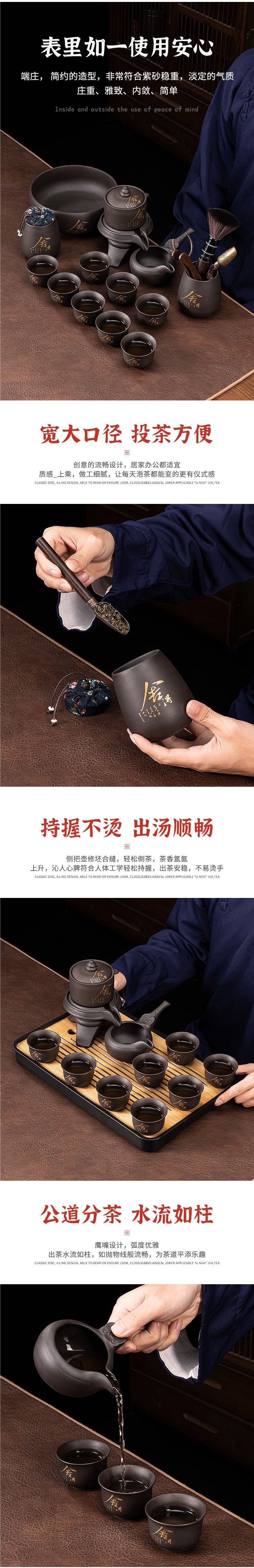 Zisha レイジー自動ティーセットホームリビングルームカンフーティーカップティーポットティートレイ小さなセット石挽きティーメーカー