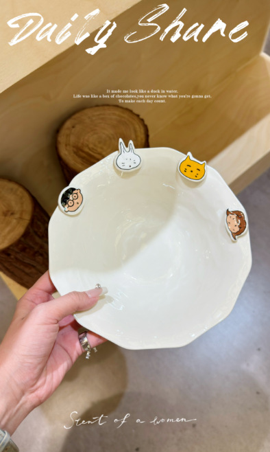 新商品ins楽しい毎日8.5インチサラダ皿家庭用セラミック皿シンプル皿デザート皿