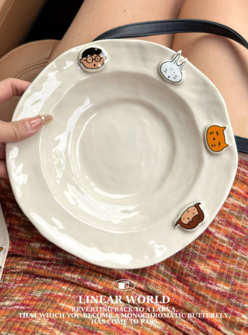 特好看ins高级简约大林男孩系列早餐盘双耳碗不规格八角碗反口盘