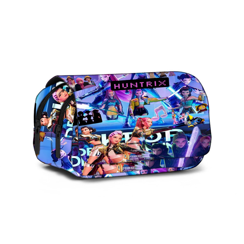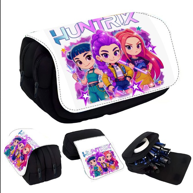 现货Huntrix Kpop学生印花双层笔袋Kpop猎魔女团周边文具袋铅笔袋