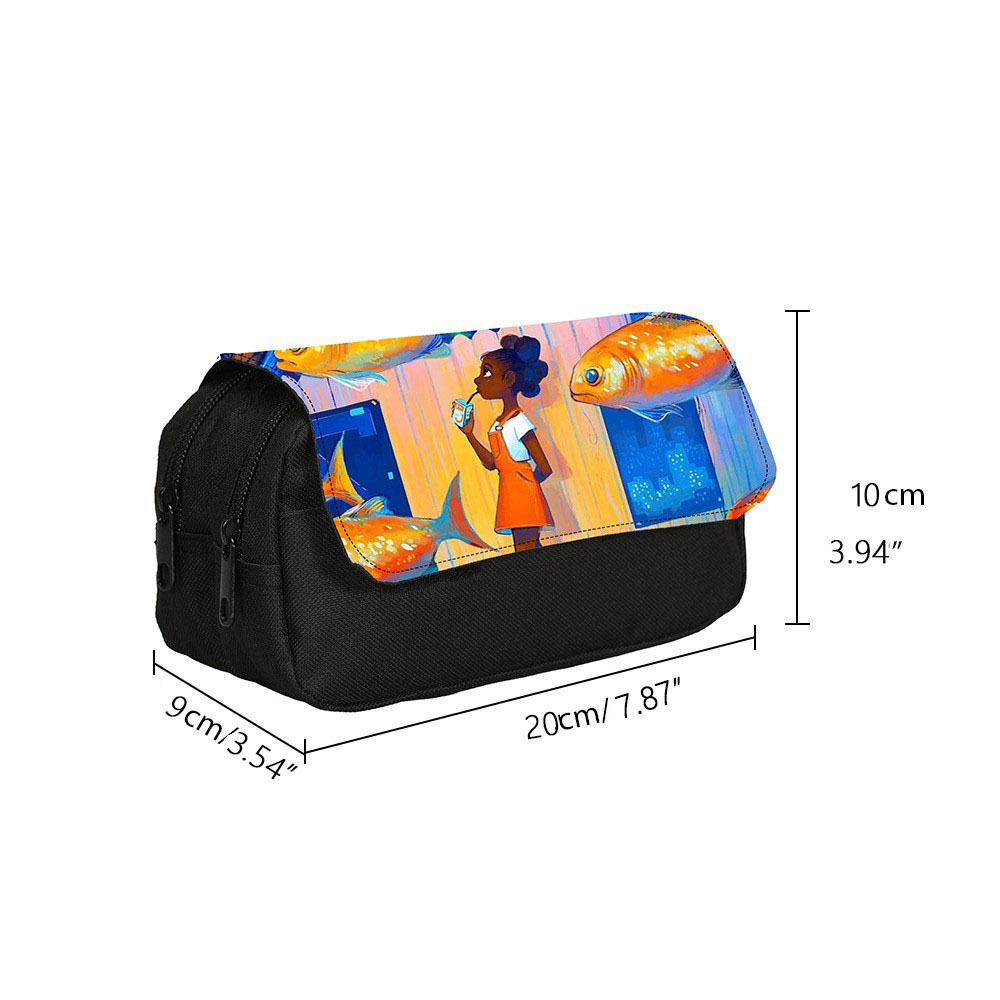 跨境新品潮流印花双层笔袋Kpop猎魔女团收纳文具盒大容量铅笔包