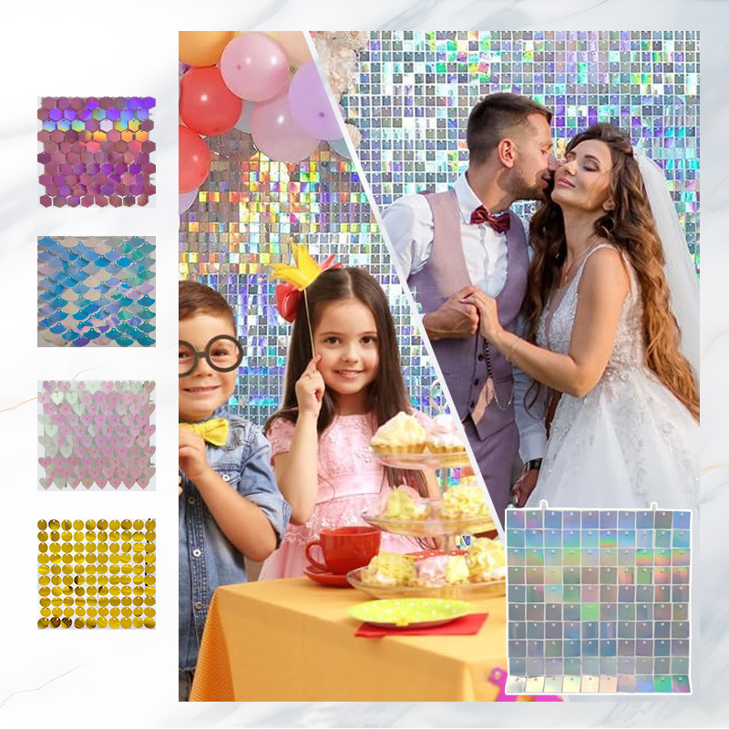 結婚式、ウェディング、鏡面風動板、スパンコール、誕生日装飾、パーティー、ステージ背景壁装飾、プラスチック風動板
