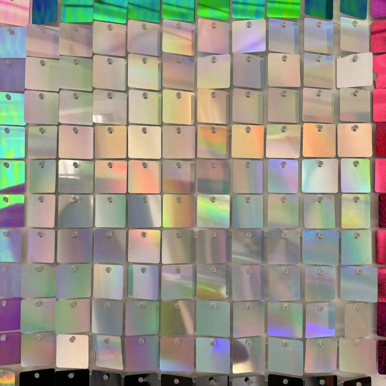 方形亮片风动板风动扣板生日派对背景墙透明网格卡扣式免底板安装