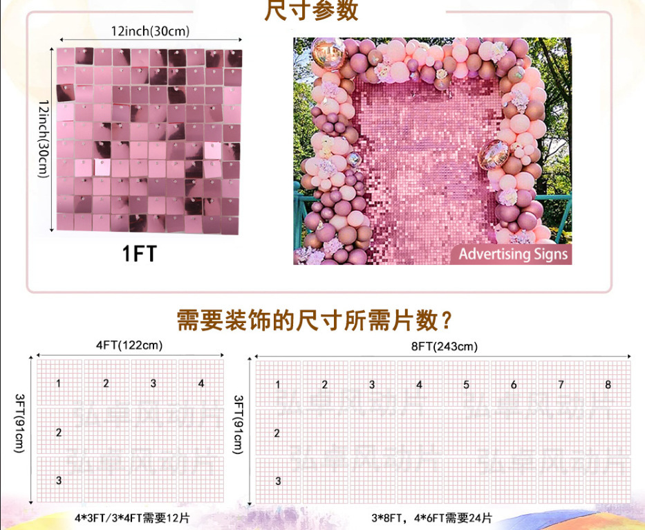 跨境风动板风动扣板风动片闪亮光广告背景生日布置背景墙舞台婚礼