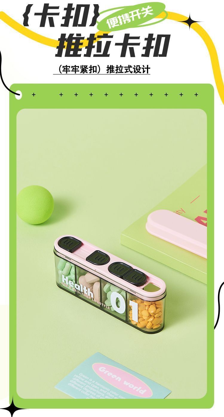 新しい分割ポータブルピルボックス、旅行用ミニピルボックス、密封防塵薬保管庫