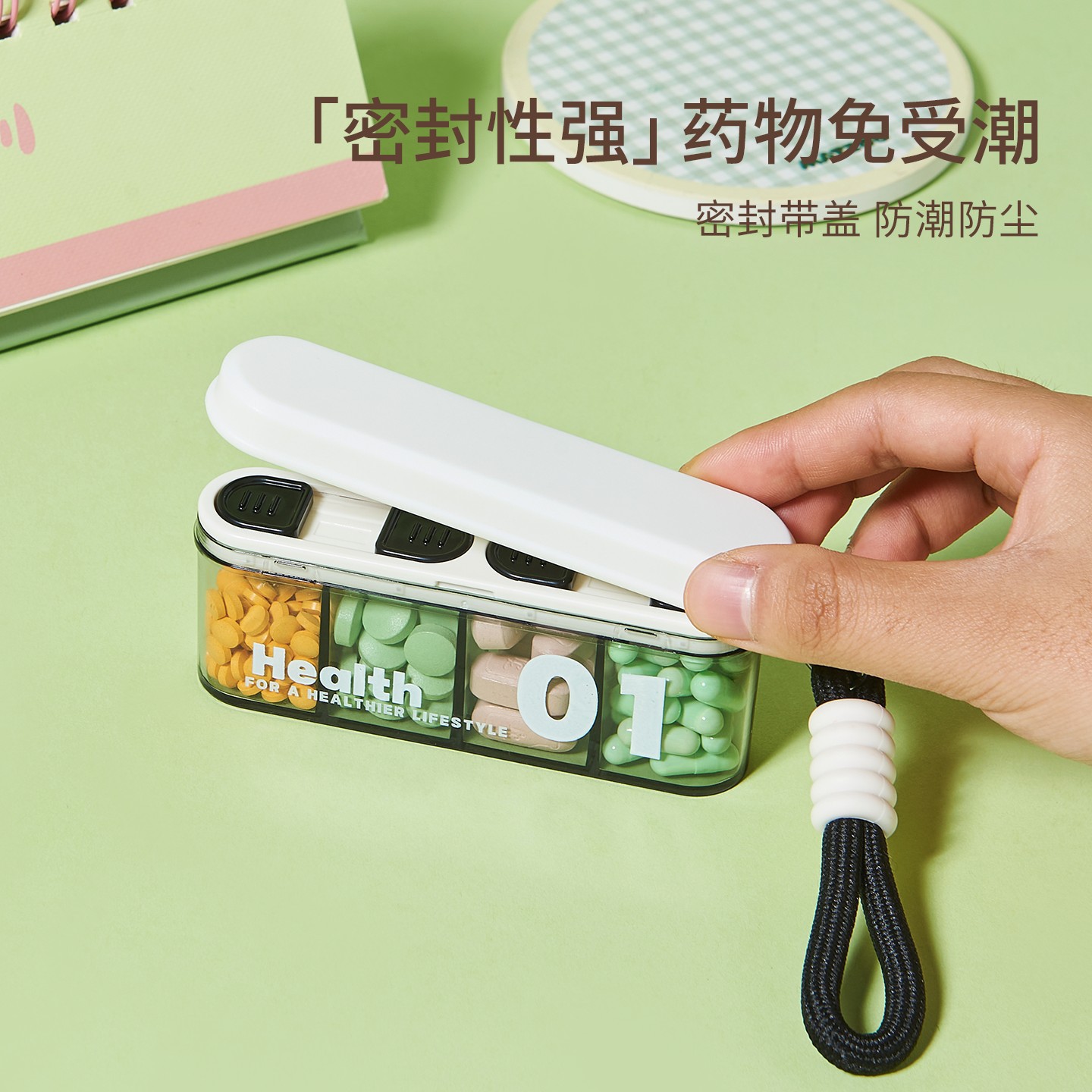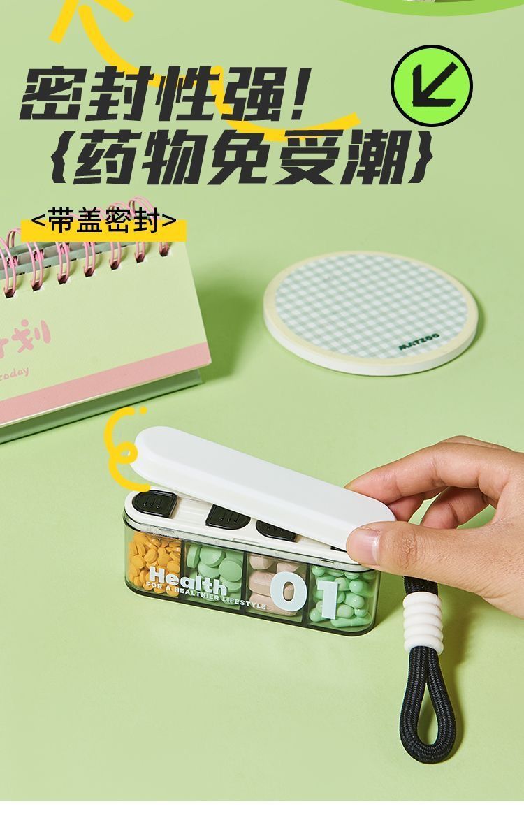 新品分格装ポータブル薬ボックス外出旅行手持ちミニ薬ボックスシーリング防塵収納