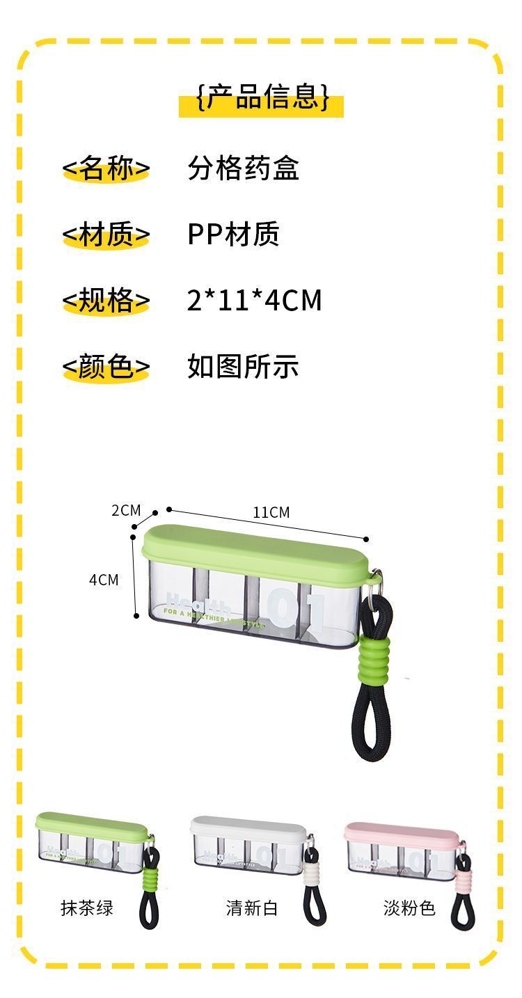 新款四格分格便携式药盒外出旅行便携药盒随身小药盒药丸防尘药盒