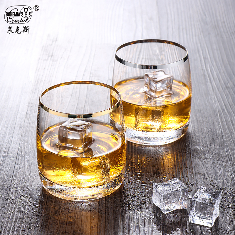 チェコ輸入クリスタルウイスキーグラス、金縁の洋酒グラス、クリスタルカップ、カスタムメイドのワイングラス