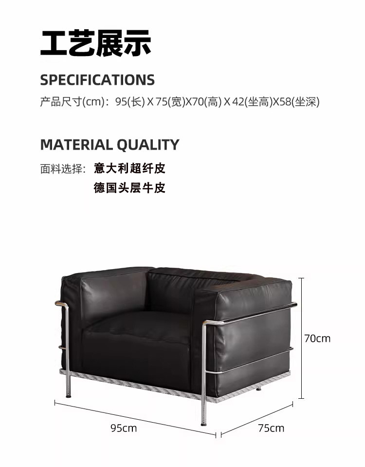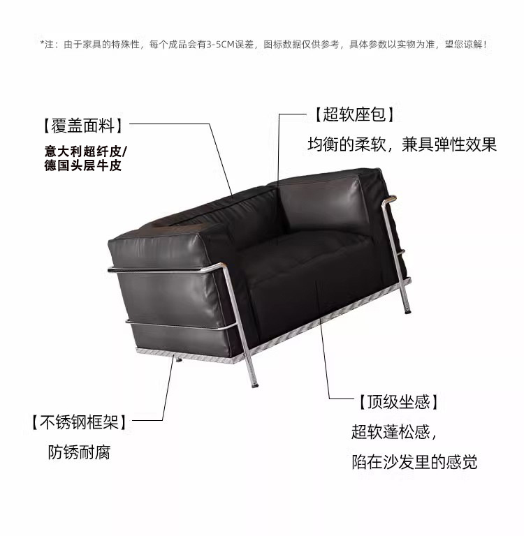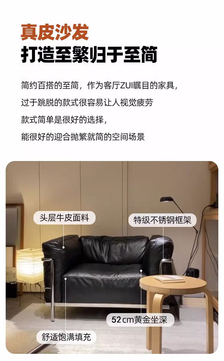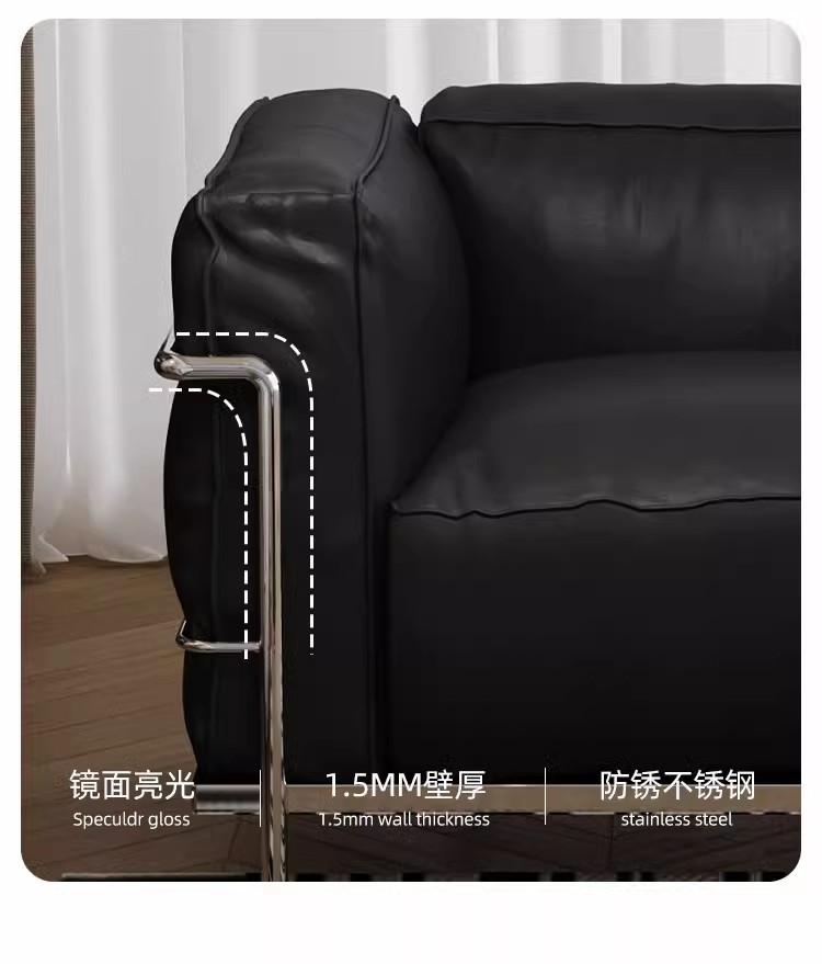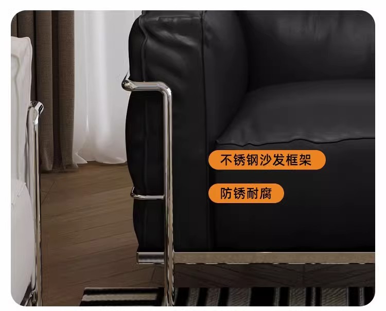 柯布西耶LC3真皮单人沙发中古设计师不锈钢直排现代轻奢客厅沙发