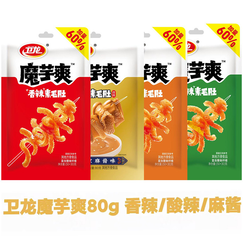 卫龙魔芋爽80g内含小包袋装商超同款香辣酸辣麻将3味辣味毛肚素食