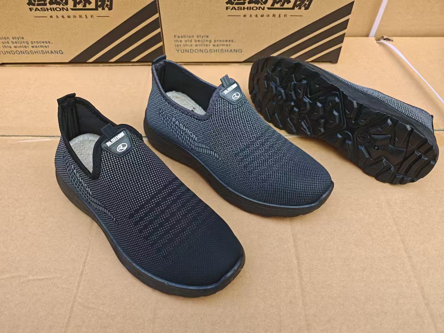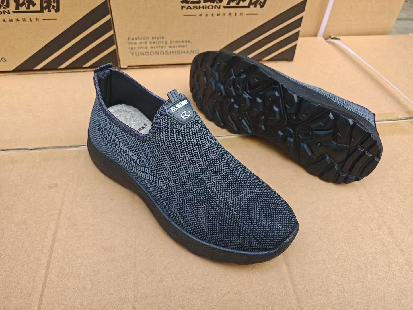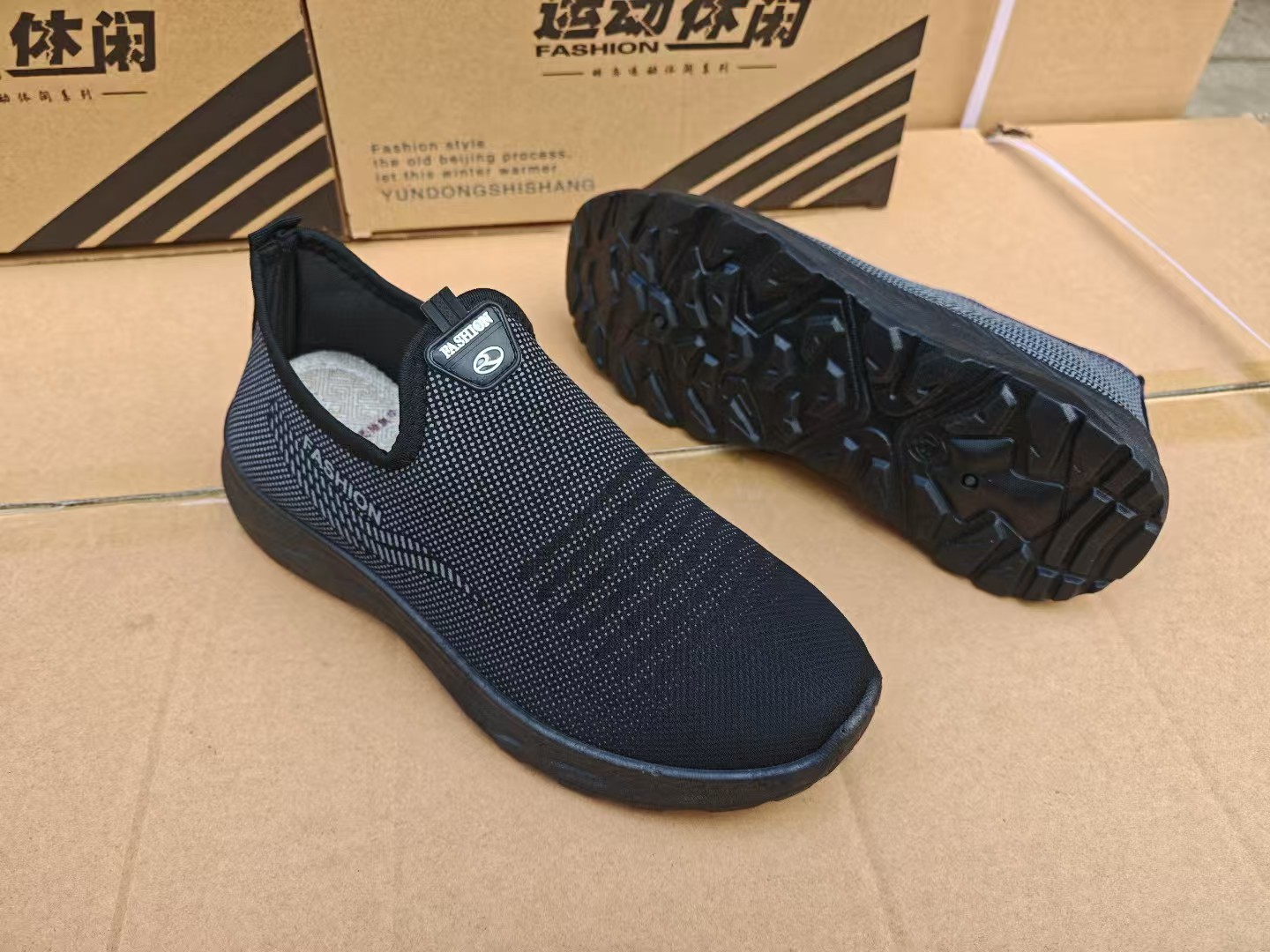 春秋の新作メンズカジュアルシューズ、スポンジ入り単層フライニットメンズシューズ、屋外通気性のある高齢者向けお父さん靴