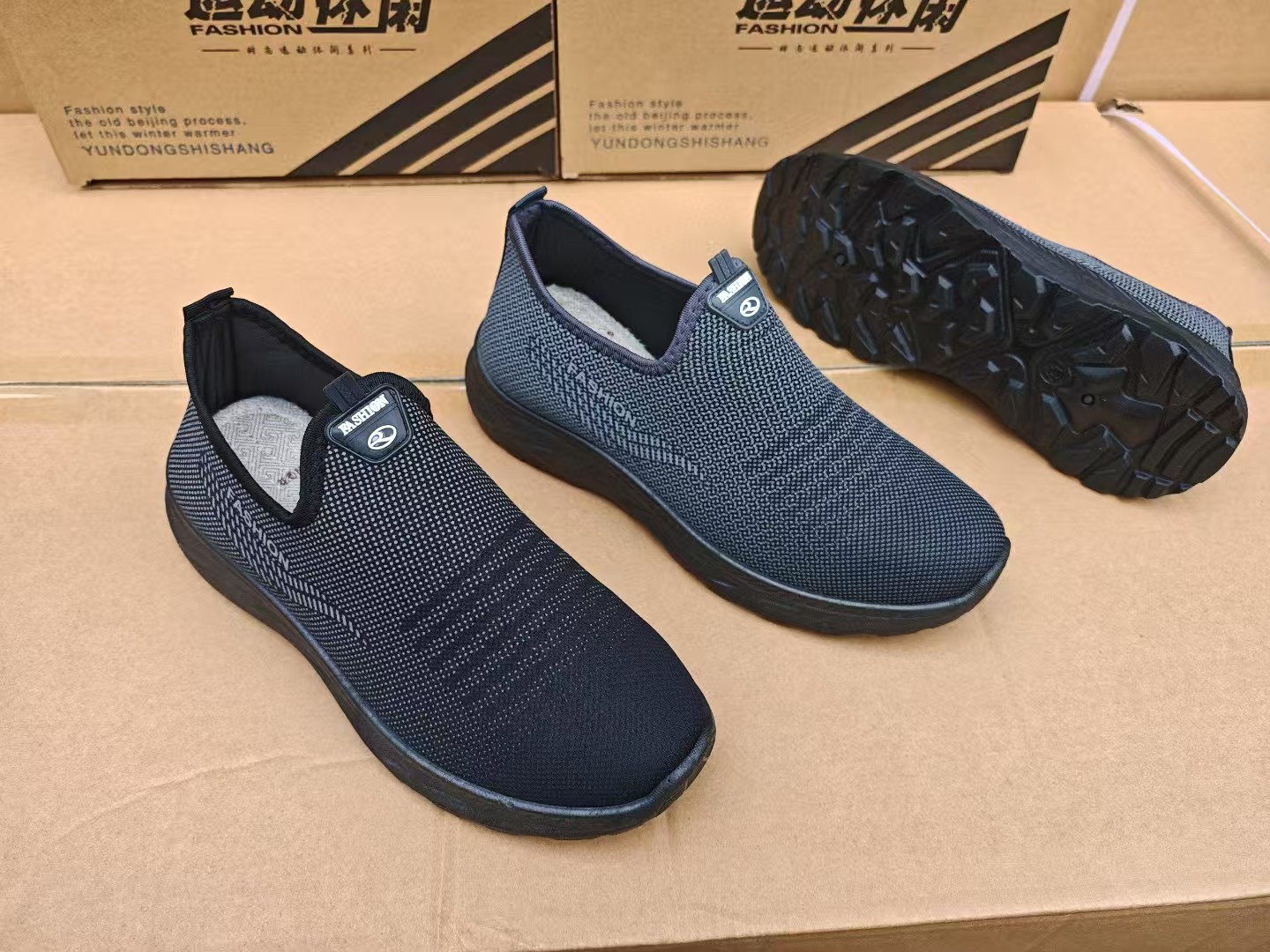 秋冬の新型男性カジュアル靴飛織とスポンジの古い北京布靴の屋外の快適な中高年のお父さんの靴
