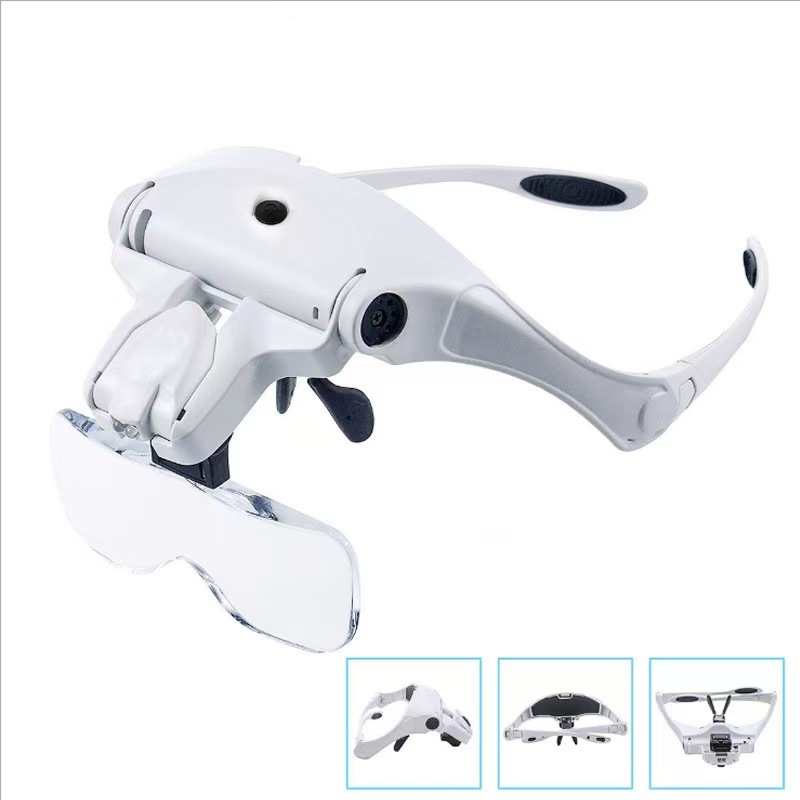 头戴眼镜式放大镜带LED灯老人阅读看书维修检验鉴定多组镜片替换