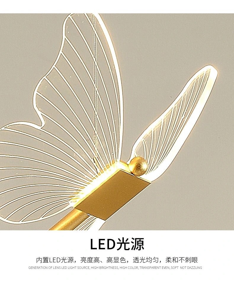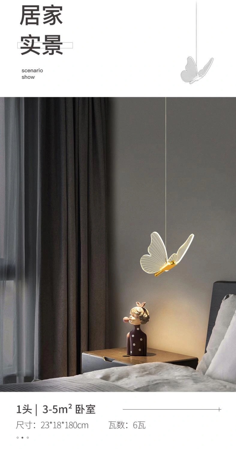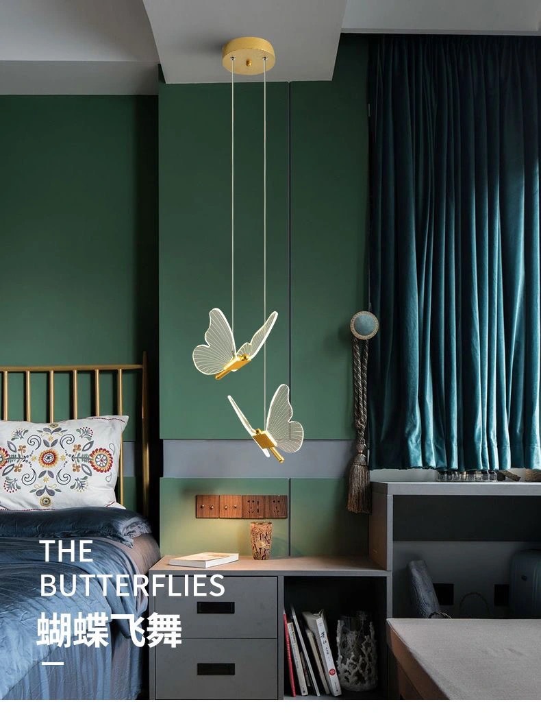 バタフライベッドサイドシャンデリア寝室クリエイティブライト高級北欧ハイエンドペンダントライトパーソナライズされた玄関子供部屋小さなシャンデリア
