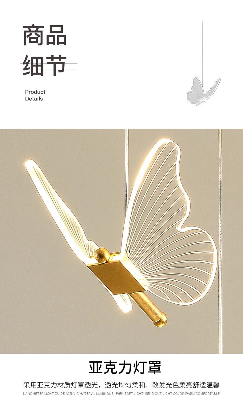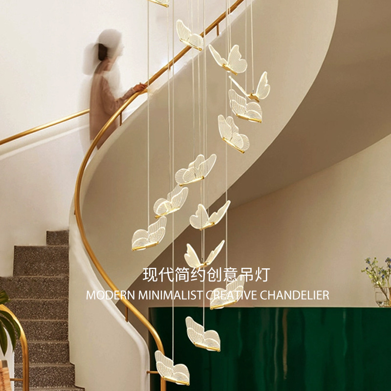 国境を越えた寝室のベッドのシャンデリア北欧の軽贅沢な創造性蝶長線別荘階段レストランシャンデリア現代シンプル