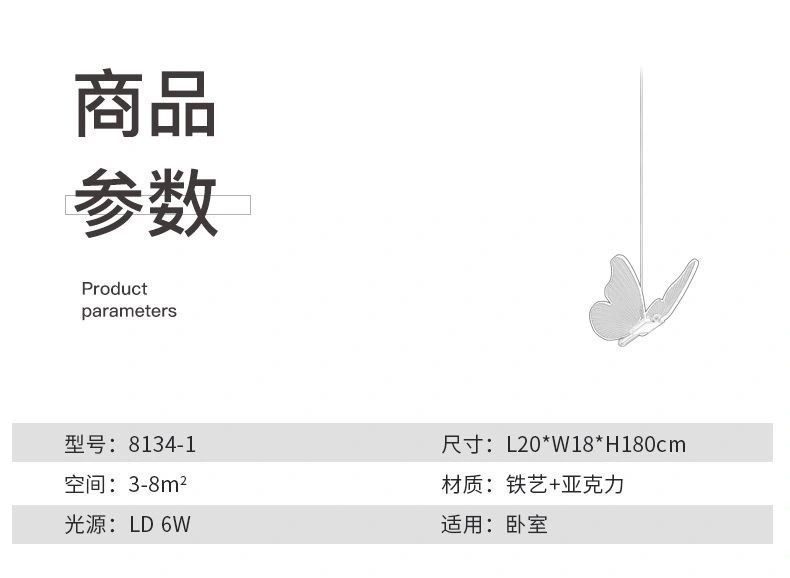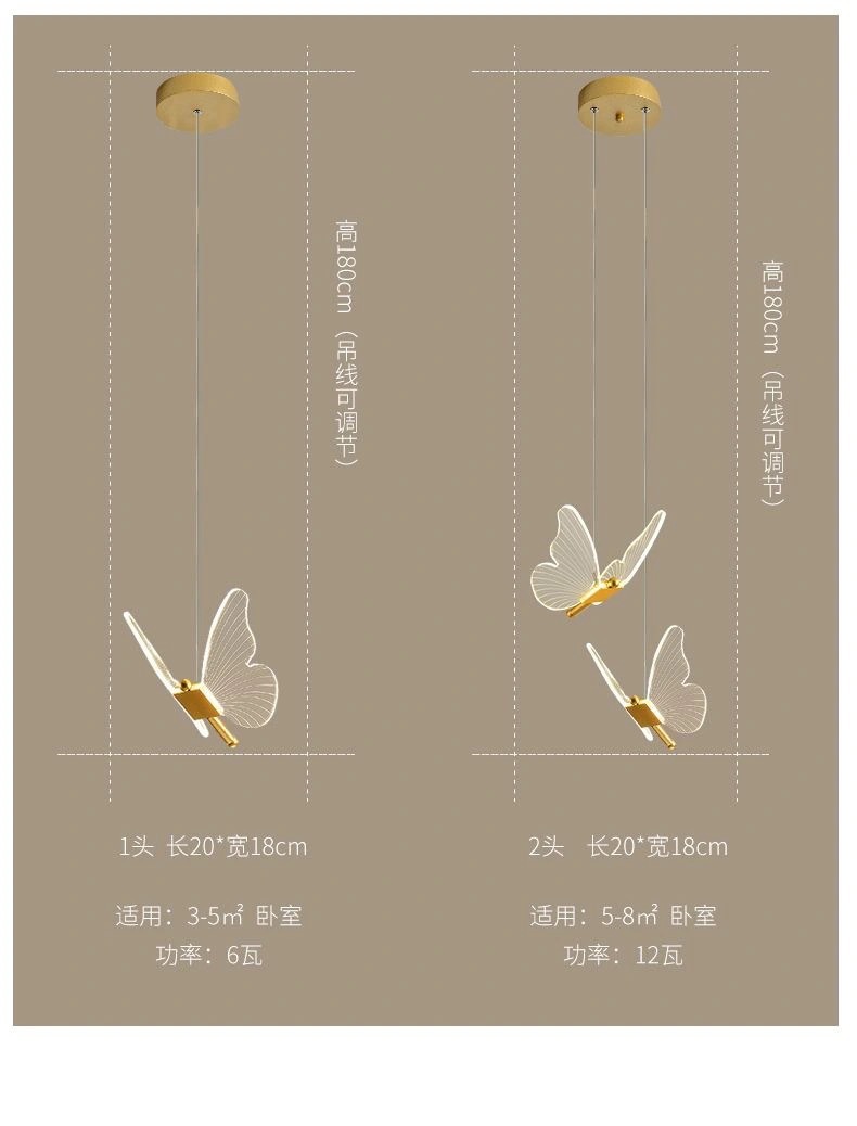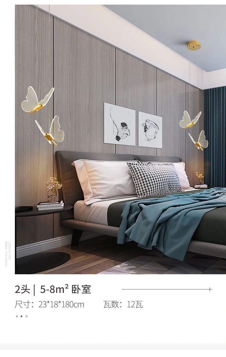 蝴蝶床头吊灯轻奢卧室现代简约创意垂线灯儿童房间主卧吊线灯家居