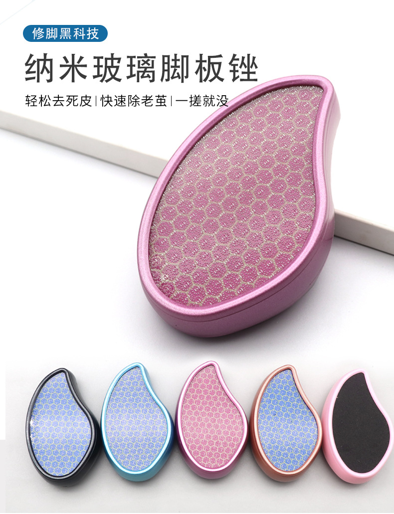 長柄ナノガラスフットファイル、死んだ皮膚や角質を除去するためのスポット卸売フット研削ツール、ペディキュアとフットスクラバーアーティファクト