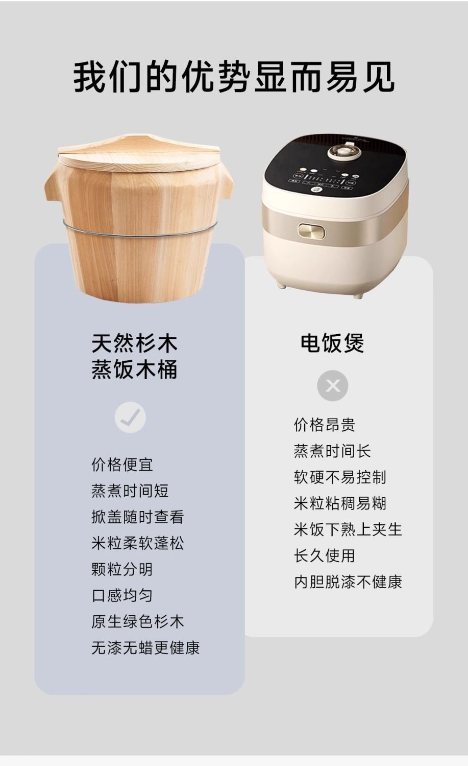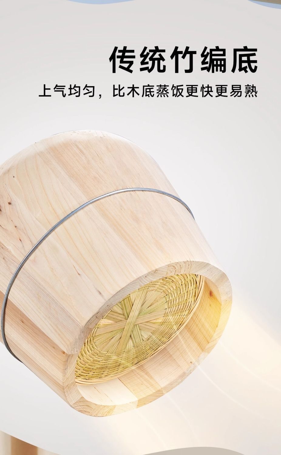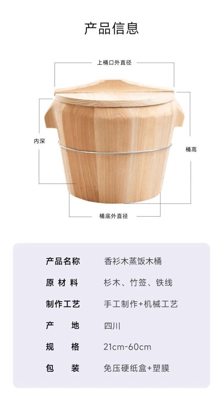 颜色 提手木盖木底桶 送饭勺+蒸布+说明书,提手木盖竹编底桶 送饭勺+蒸布+说明书