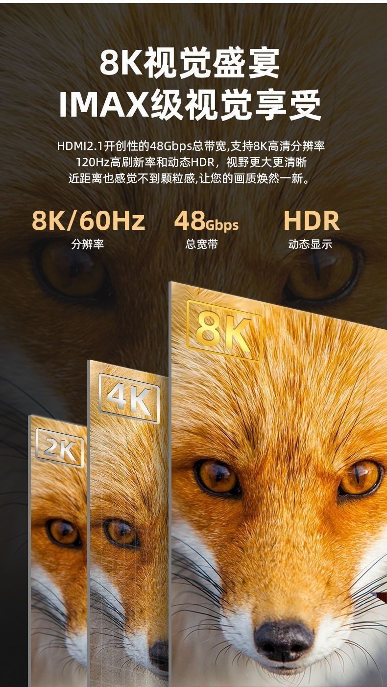 超清HDMI8K高清线通用2.1版,电视,电脑,机顶盒,投影仪专用线