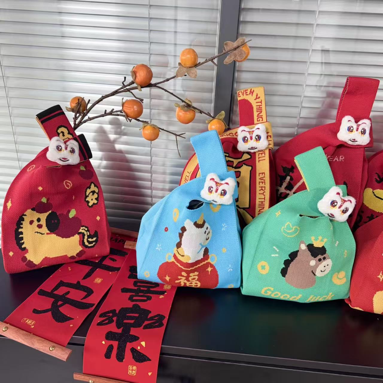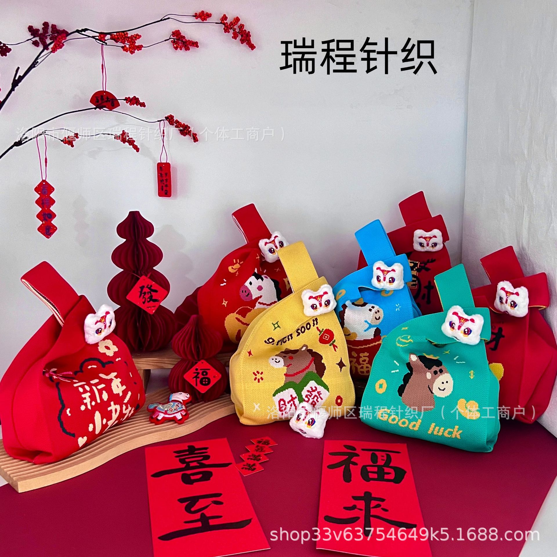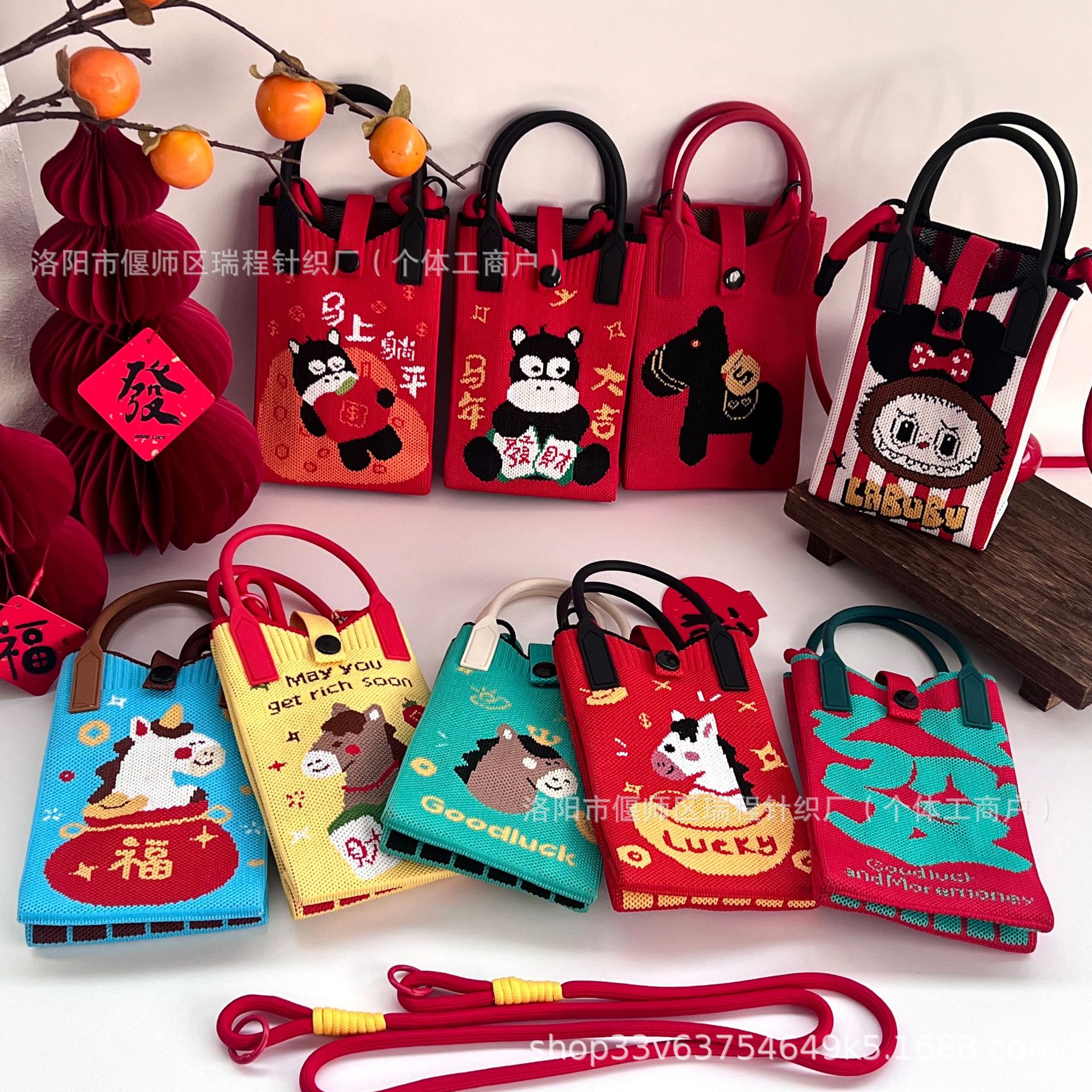 2026马年新款喜庆针织手拎包手提袋便携可斜挎包原创百搭礼品包女