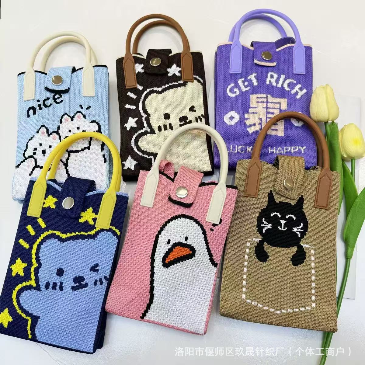 親子ins携帯電話バッグ、ファッショナブルで多用途なクロスボディバッグ、高級ハンドバッグ、かわいい漫画のニットバッグ、クラッチバッグ