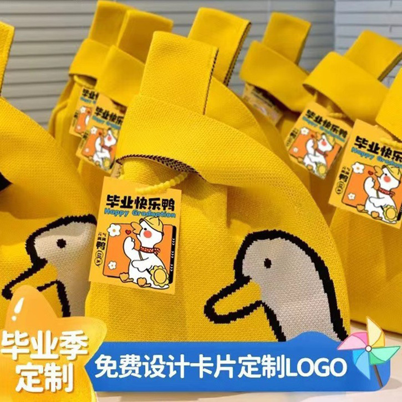 厂家直销针织包包小方包加油鸭员工入职礼品定制公司生日活动创意
