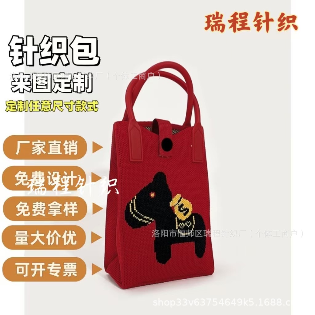 新年马年大吉针织手提包喜铺包喜庆伴手礼包红色轻便手拎包福袋