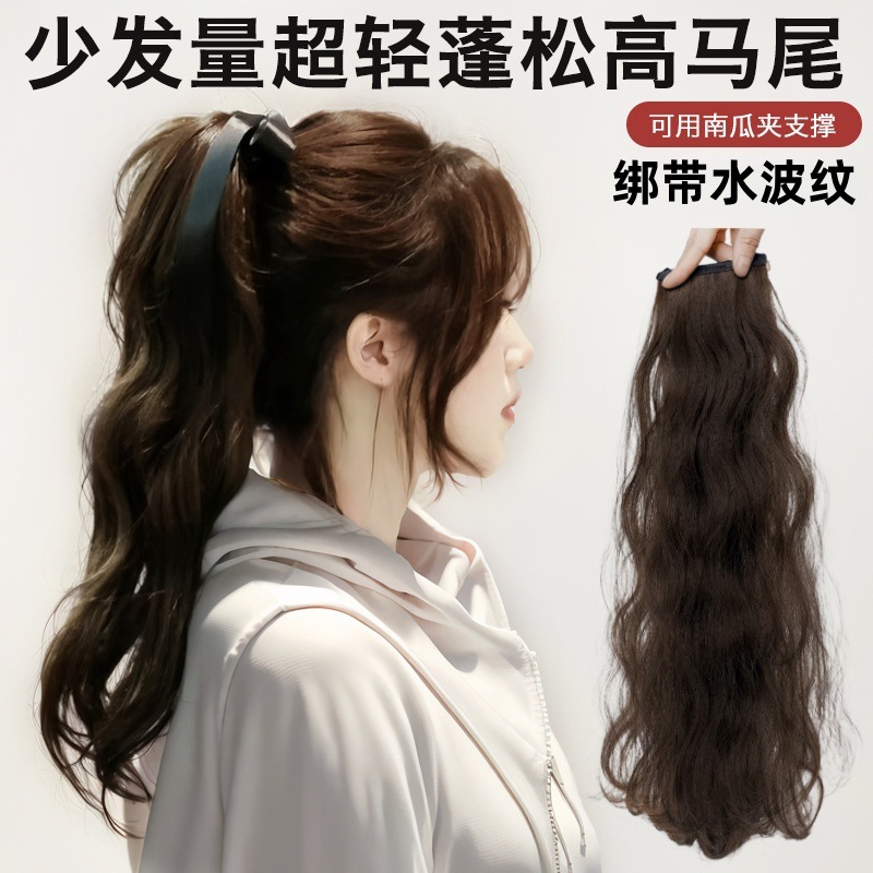 假发马尾辫子女长发慵懒甜酷仿真发绑带式皮筋低扎自然水波纹马尾