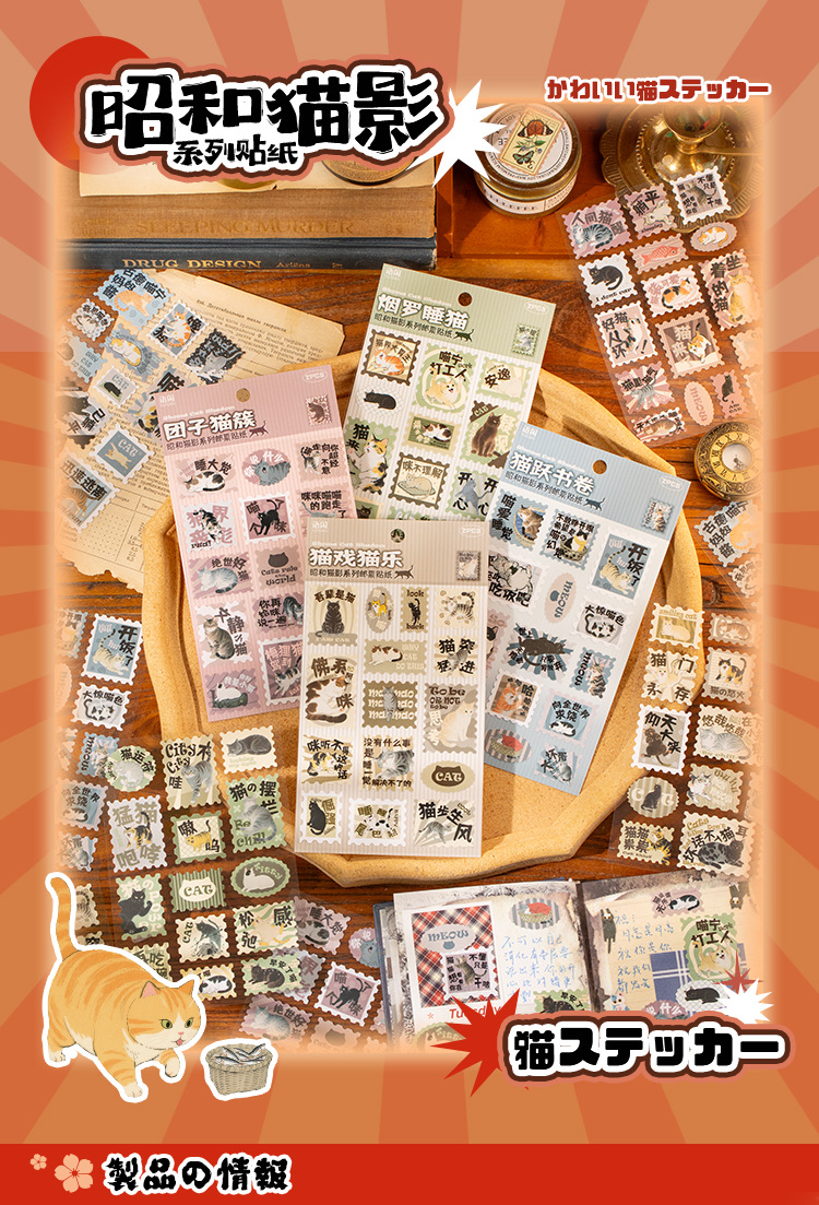 通过网盘分享的文件:语闲 昭和猫影邮票贴纸2张 4款
