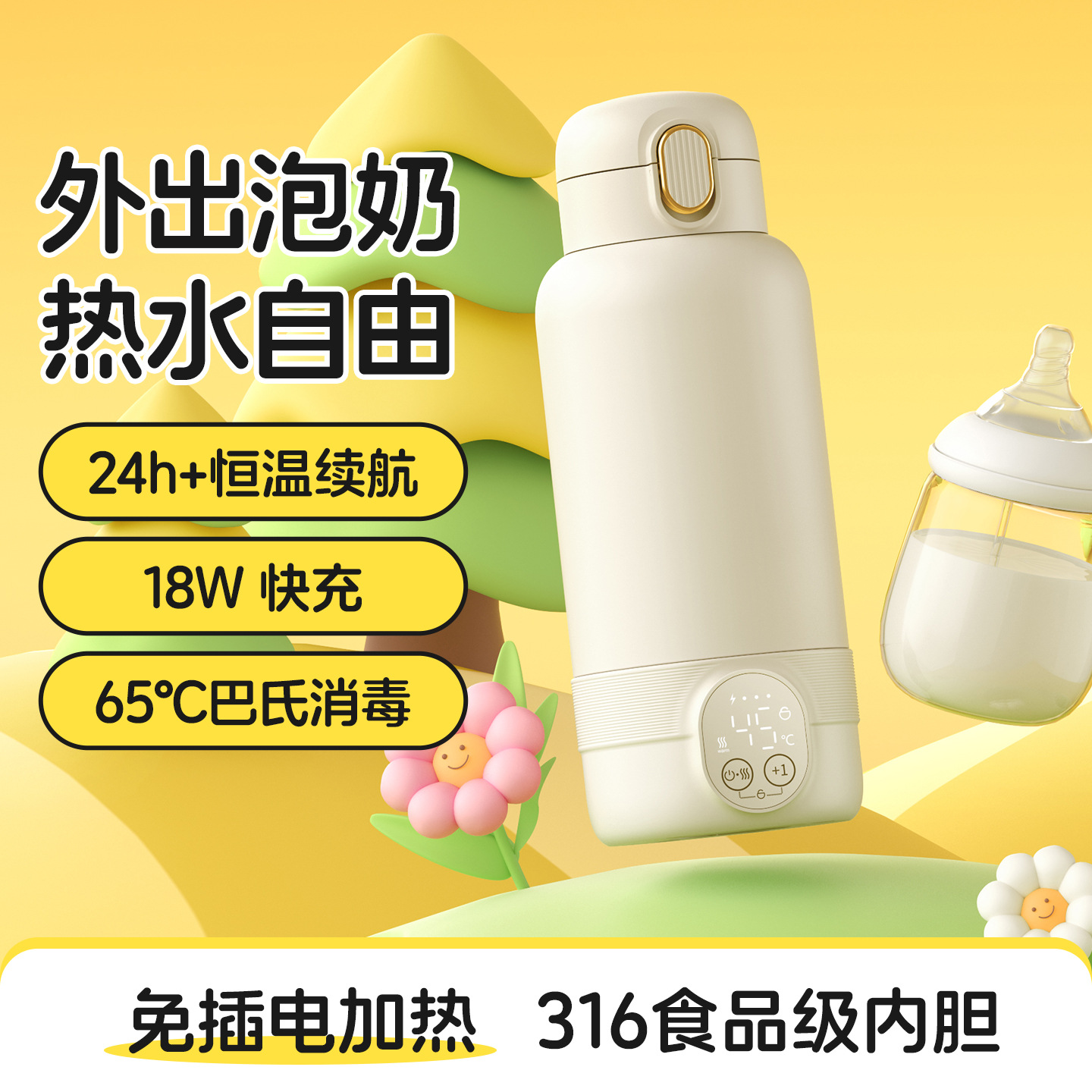 Tiktok热销跨境无线恒温婴儿外出冲奶加热杯暖奶器宝宝冲奶加热器