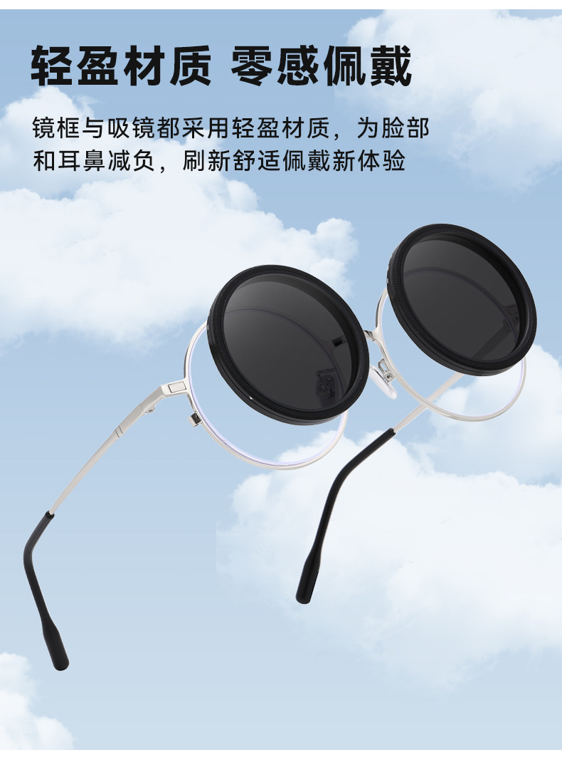 磁吸套镜ND9档旋转可调墨镜可配度数近视镜偏光套镜可调节减光镜