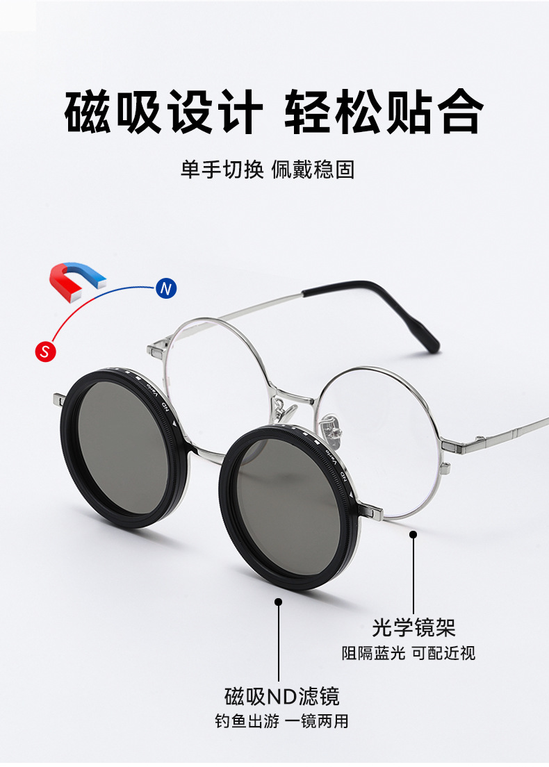 磁吸套镜ND可调旋转减光墨镜防紫外线滤镜个性偏光太阳镜可近视