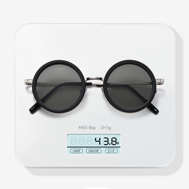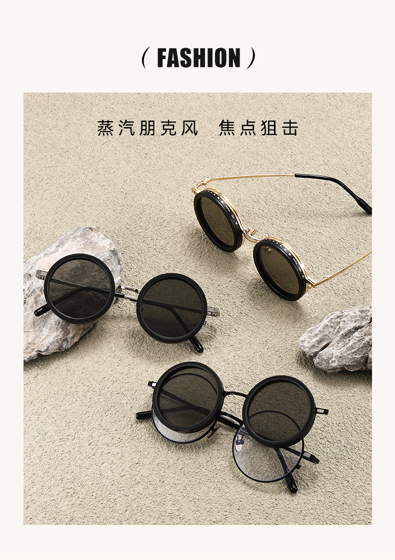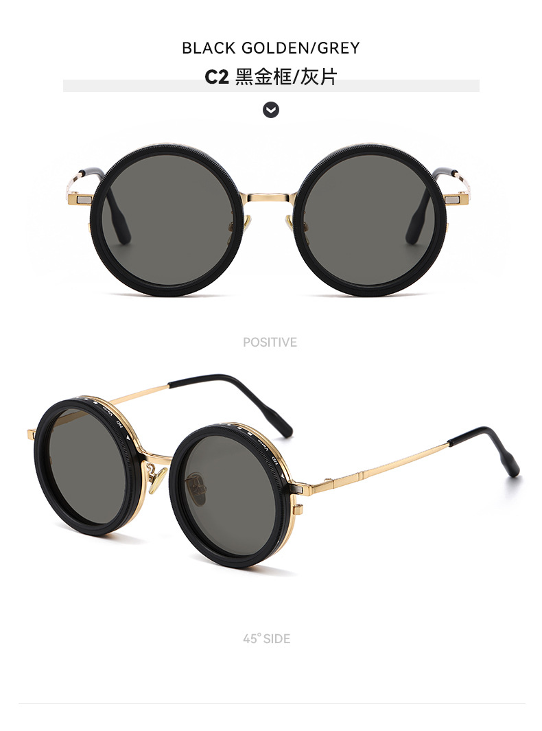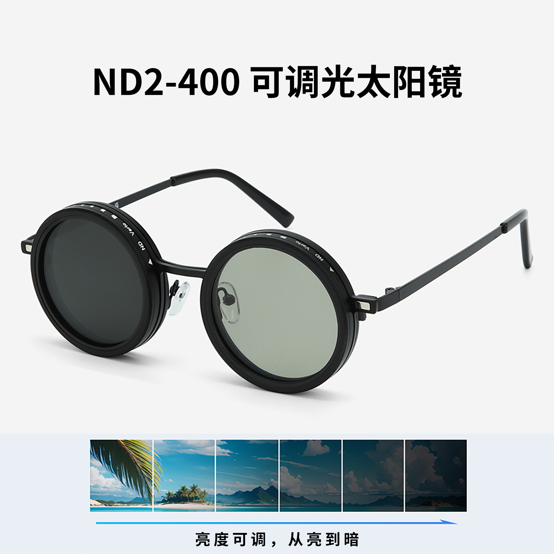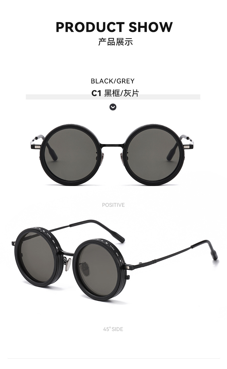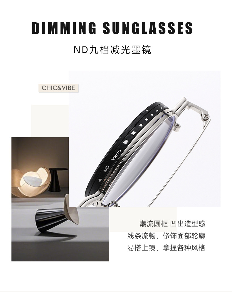 新款ND9档可调节偏光太阳镜男女朋克风个性旋转减光墨镜轻薄圆框