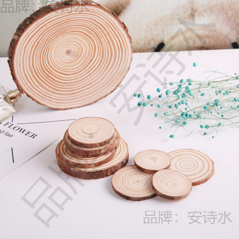 原木年轮木片手工原木木桩底座造景幼儿园环创装饰桐木松木片摆件