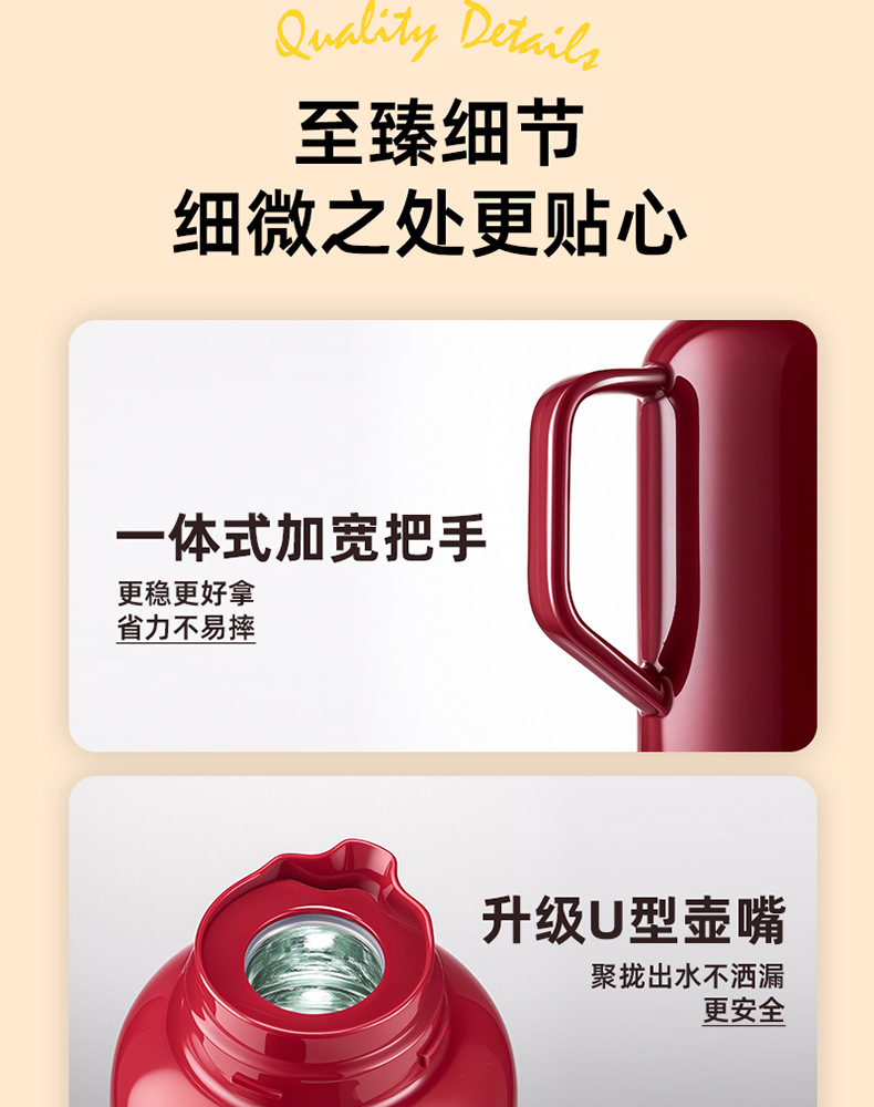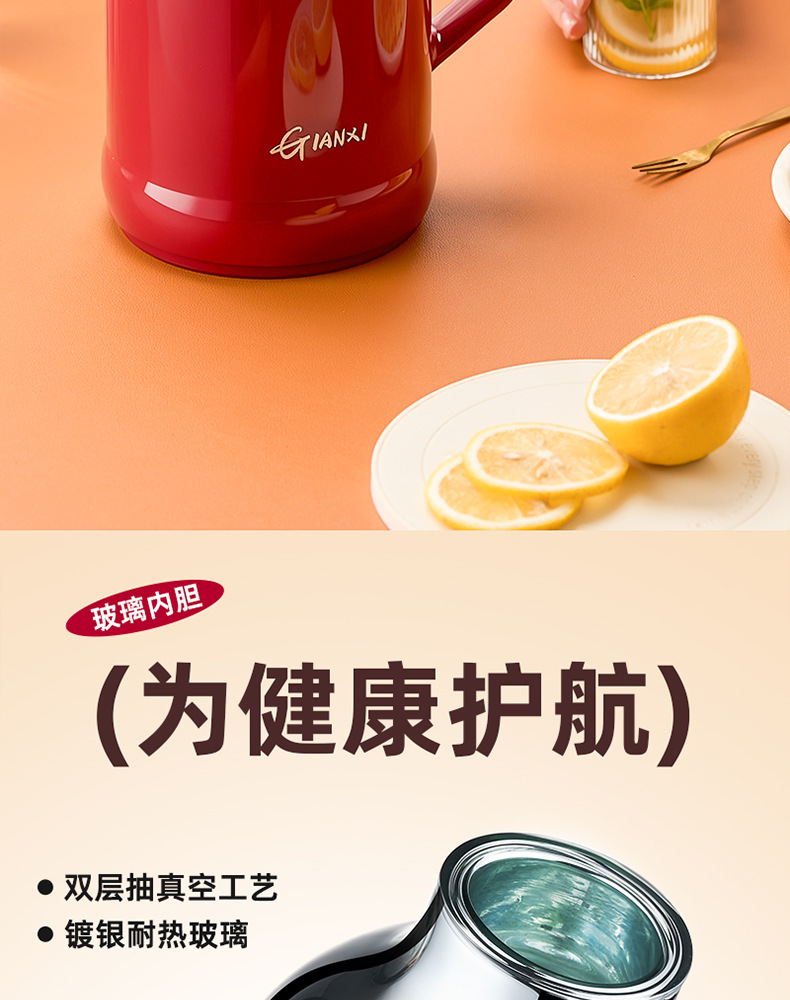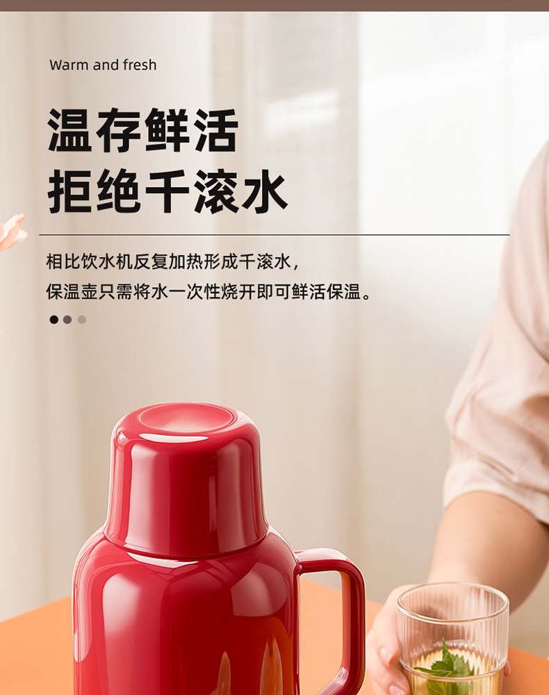 捷安玺红色热水瓶结婚陪嫁暖水壶大容量家用宿舍玻璃内胆保温壶