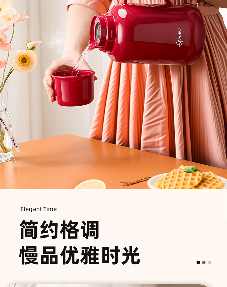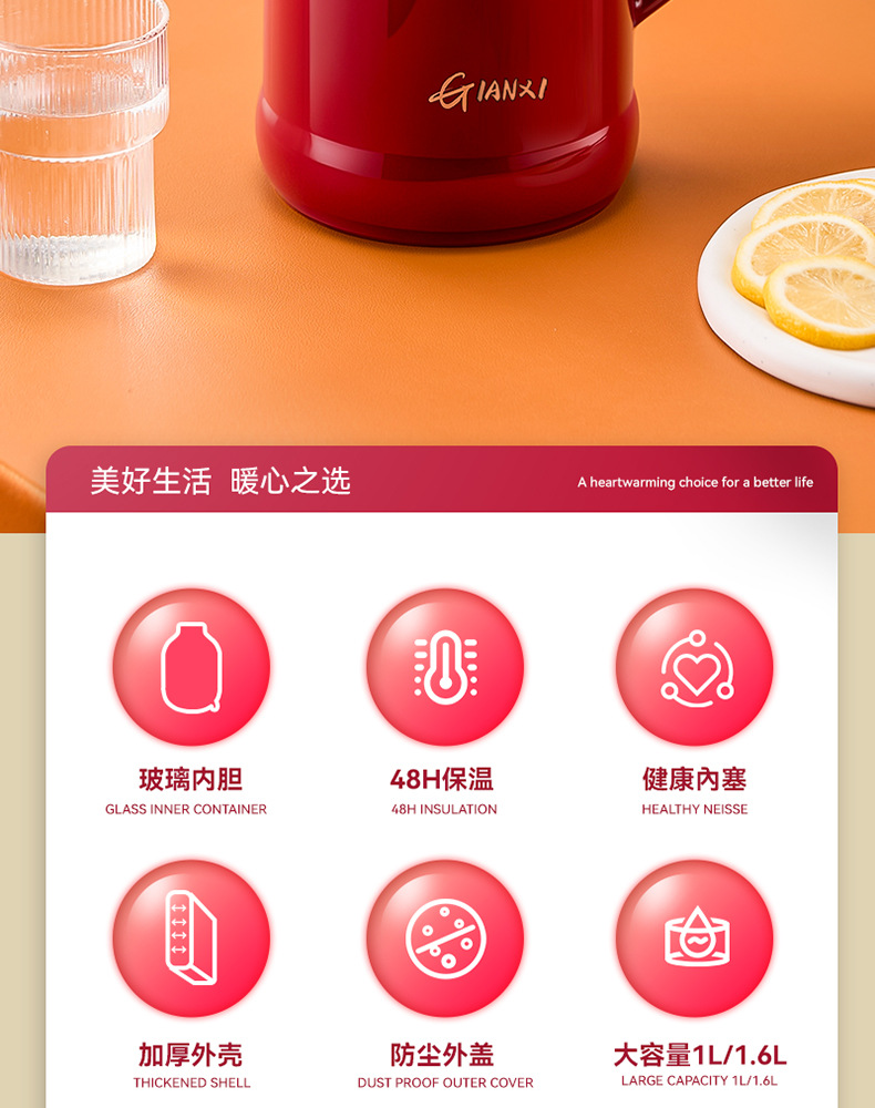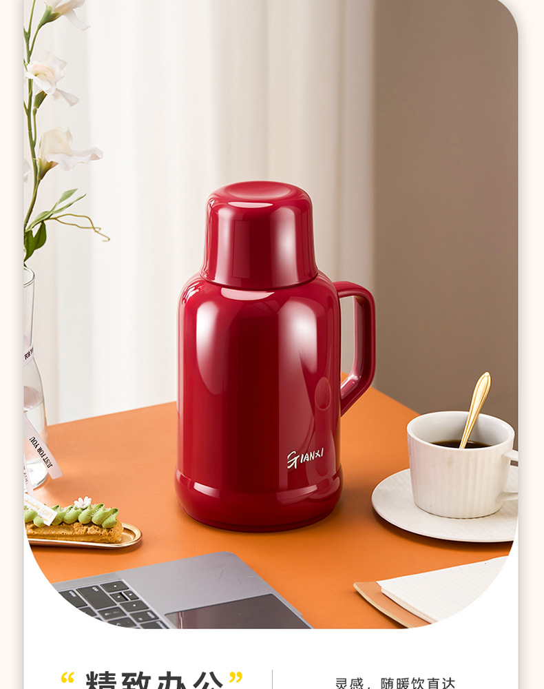 赤い保温ポット結婚家庭用オフィスガラス内の水筒の大容量のお祝いの祝日の冬の湯沸かし器