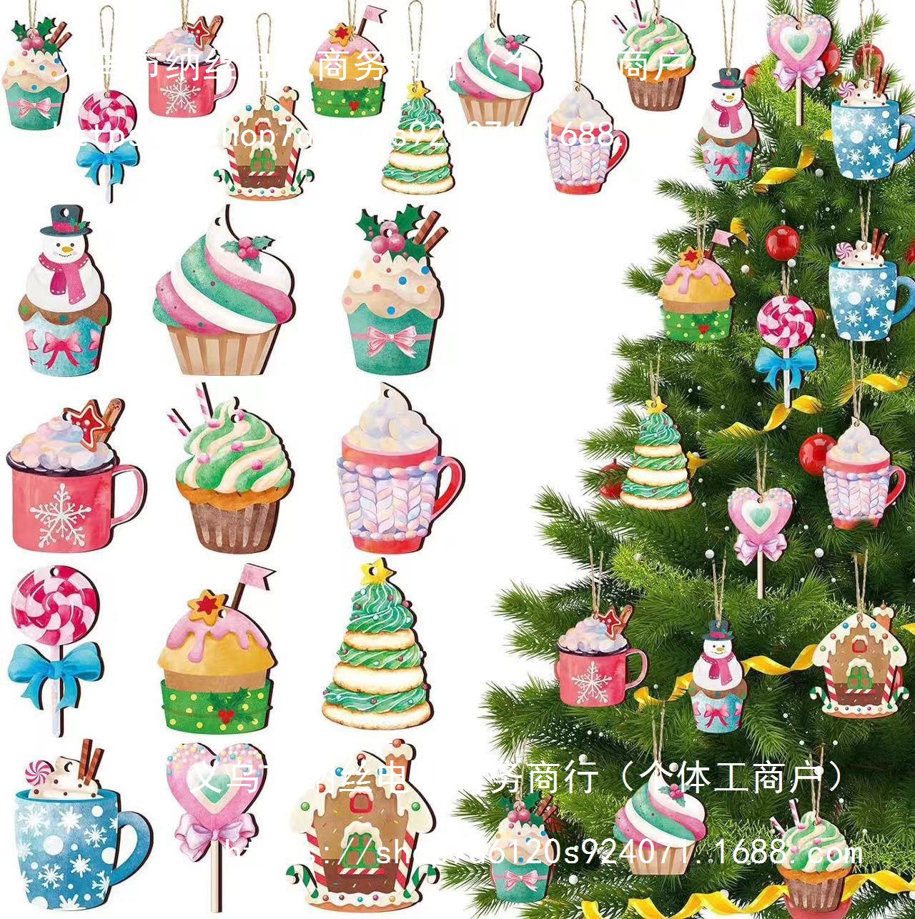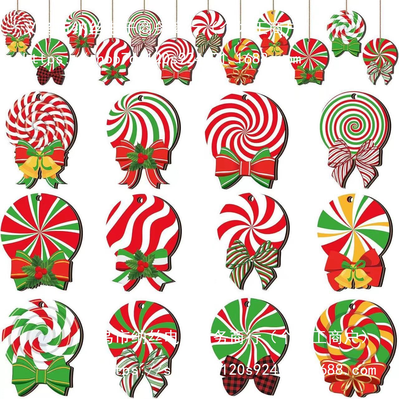 クロスボーダー木製クリスマスキャンディー色木製吊り工芸品クリスマスツリー装飾パーティー雰囲気看板