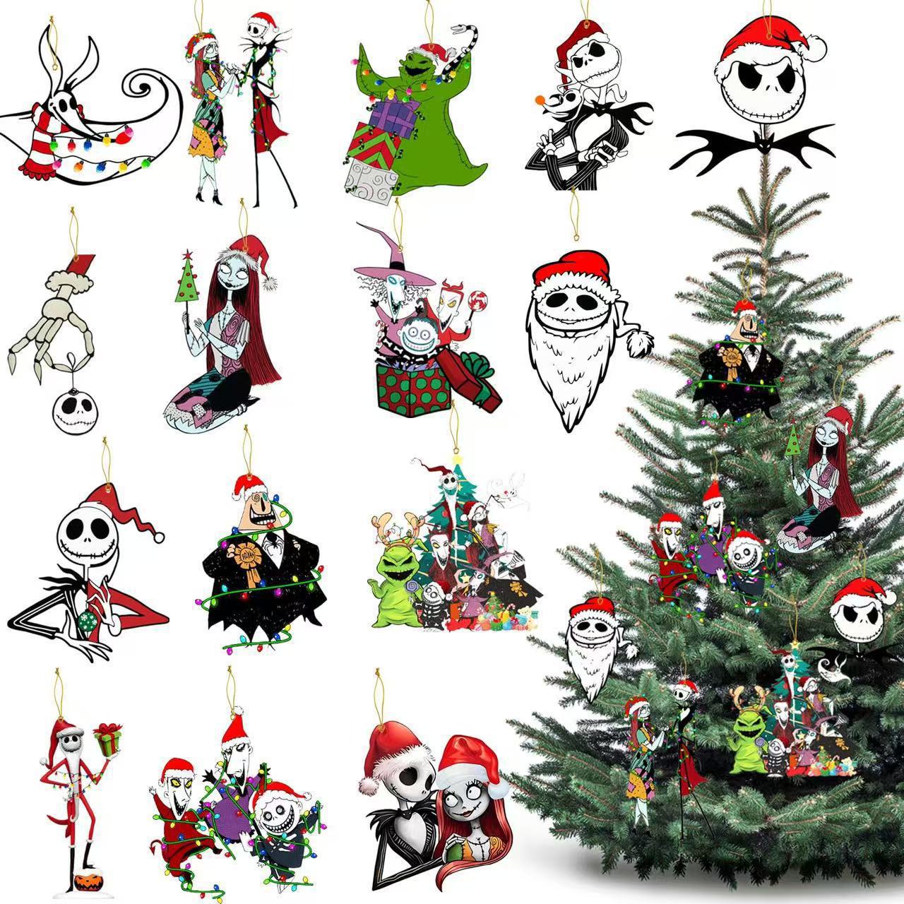圣诞夜惊魂装饰品圣诞树装饰万圣节木制装饰品圣诞树前夜派对挂饰