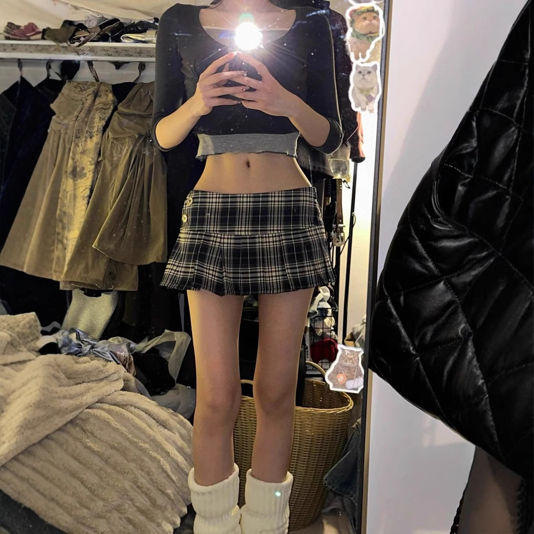 アメリカのギャルの低い腰の格子の半身のスカートの女性の春の学院の風格の紋様のJKのプリーツのスカートはやせているa字のミニスカートを現します。