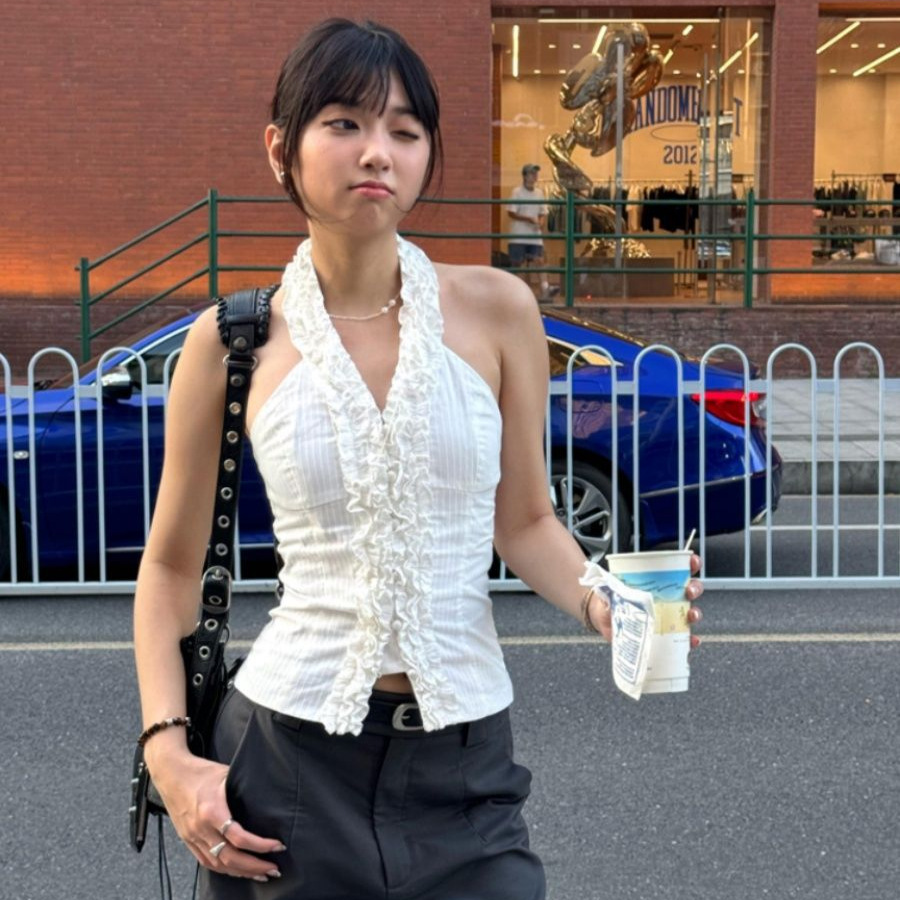 フランス式の純粋な欲望のハスの葉の縁に首の袖のないキャミソールのカーディガンを掛けます。
