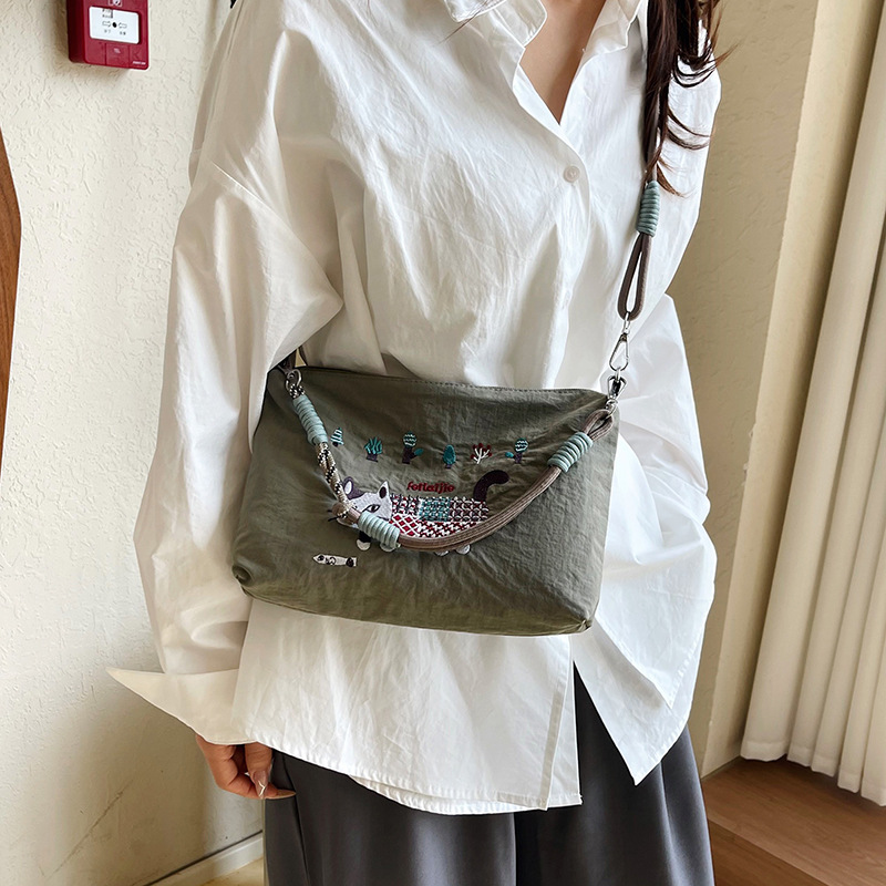 大容量春夏猫刺繍バッグ手提げ斜めショルダーバッグショッピングバッグ漫画ナイロンバッグ女