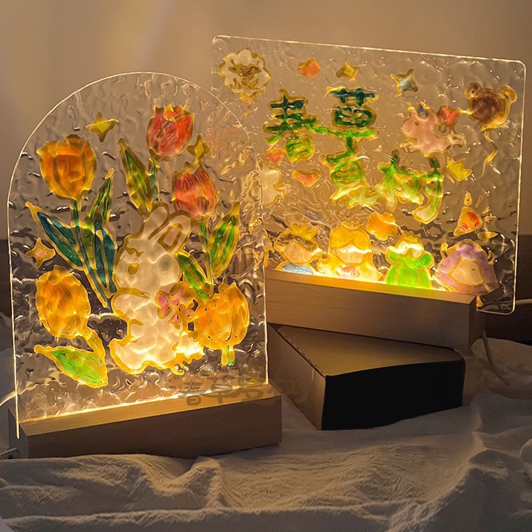 国庆节儿童礼物彩绘玻璃画diy材料手工小夜灯水波纹亚克力板台灯