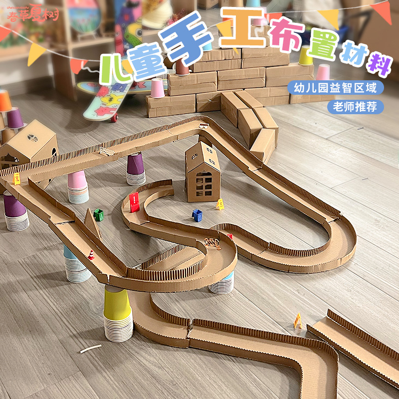 幼稚園建設区の自作教育玩具区の角材料投入区域の中の大班道路の低構造交通