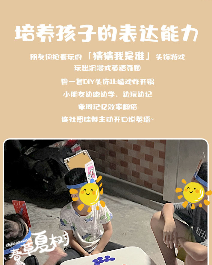 早教儿童英语老师教具头带头饰游戏玩具猜猜我是谁猜卡片DIY桌游