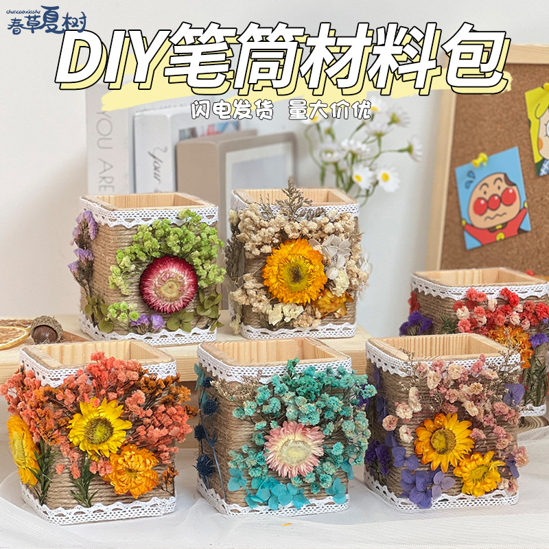 卒業シーズンギフト麻縄プリザーブドフラワーペンホルダーラウンドスクエア手作りDIY素材幼稚園活動ウォームアップチームビルディング
