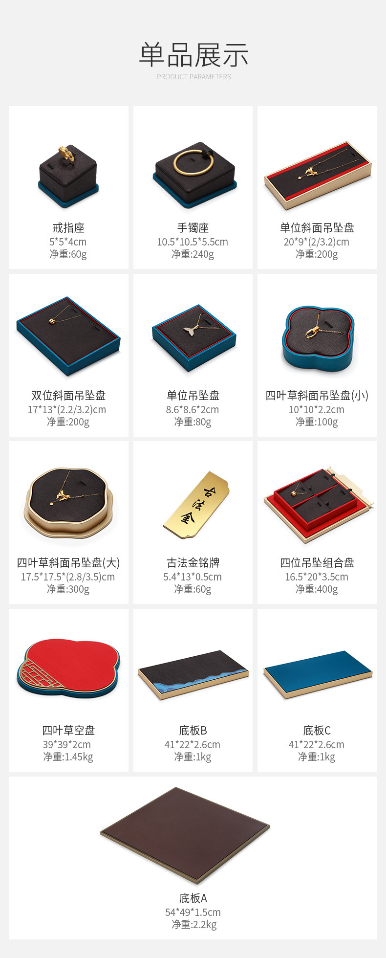颜色 戒指座,单位吊坠座,手镯座,手串座,5位手绳盘,双位斜面吊坠盘,四叶吊坠盘(小),四叶草吊坠盘(大),单位斜面吊坠盘,四位吊坠组合盘,古法金铭牌,4位吊坠盘,9位吊坠盘,15位格盘,看货盘(红色-大号),看货盘(深咖色-大号),咖色底板,底板B,底板C,四叶草底板,底板D,底板E,设计师套餐二十一,设计师套餐二十二,设计师套餐二十三,设计师套餐二十四,设计师套餐二十五,设计师套餐二十六,设计师套餐二十七