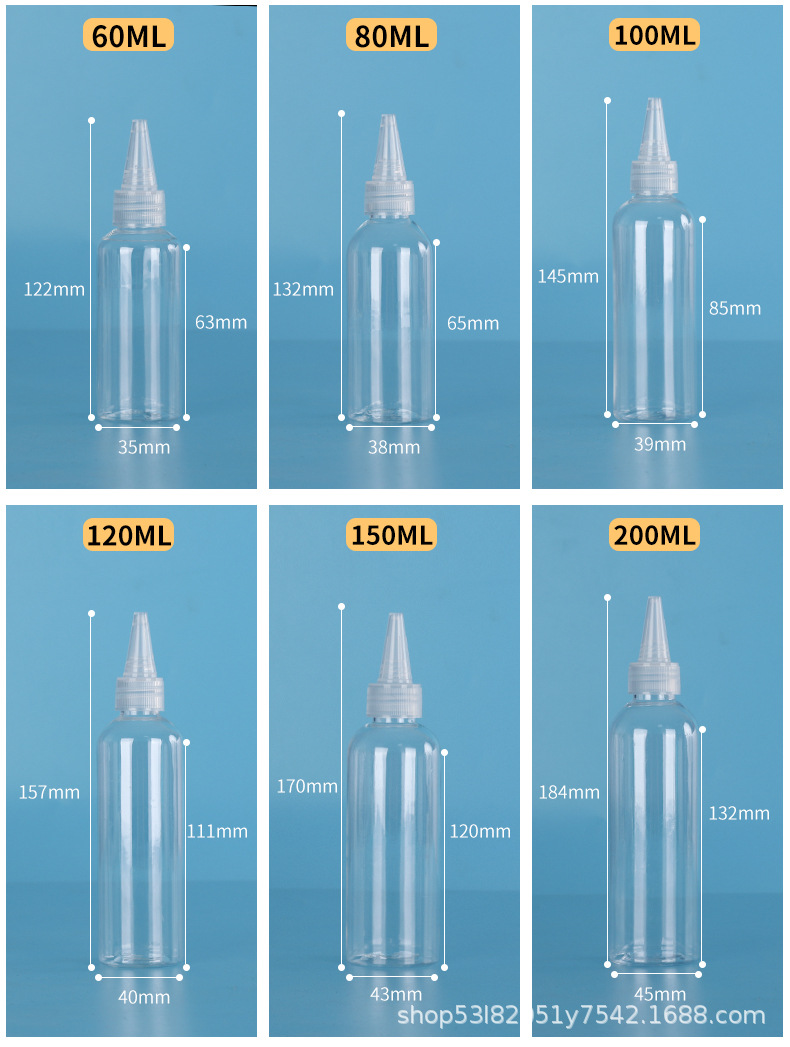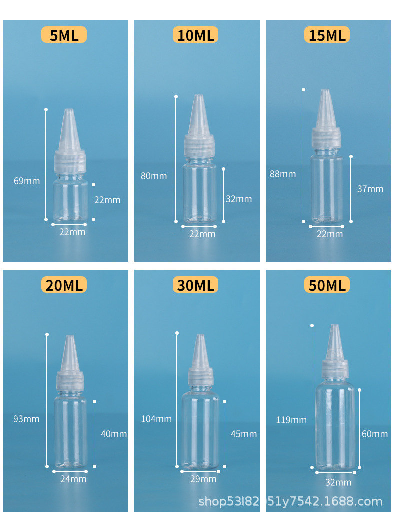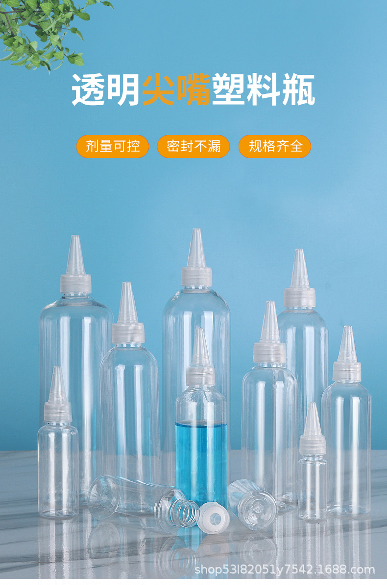 现货透明尖嘴瓶100毫升200毫升多型号液体分装调色颜料瓶