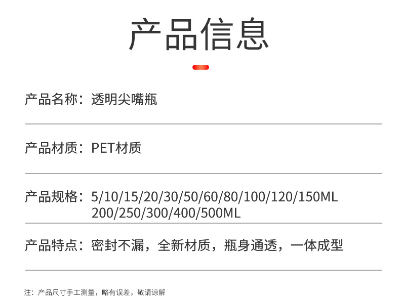 规格型号 5ml,10ml,15ml,20ml,30ml,50ml,60ml,80ml,100ml,120ml,150ml,200ml,250ml,300ml,400ml,500ml