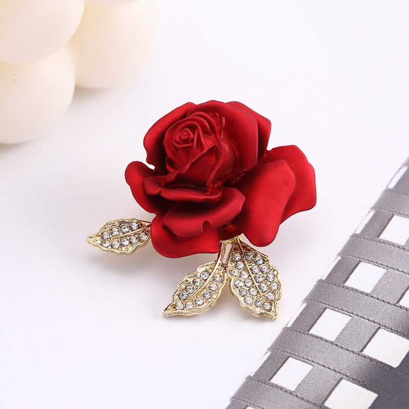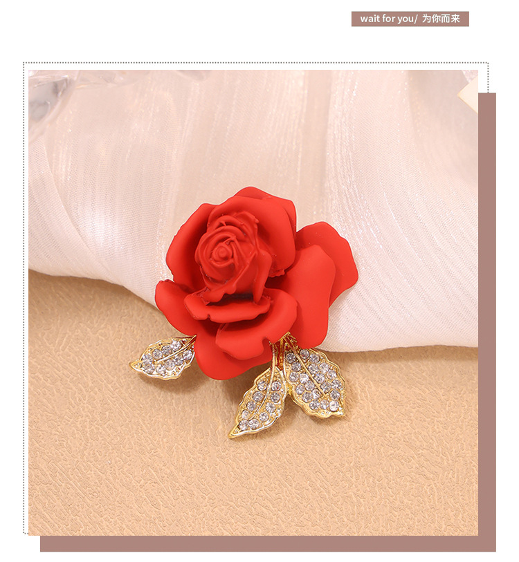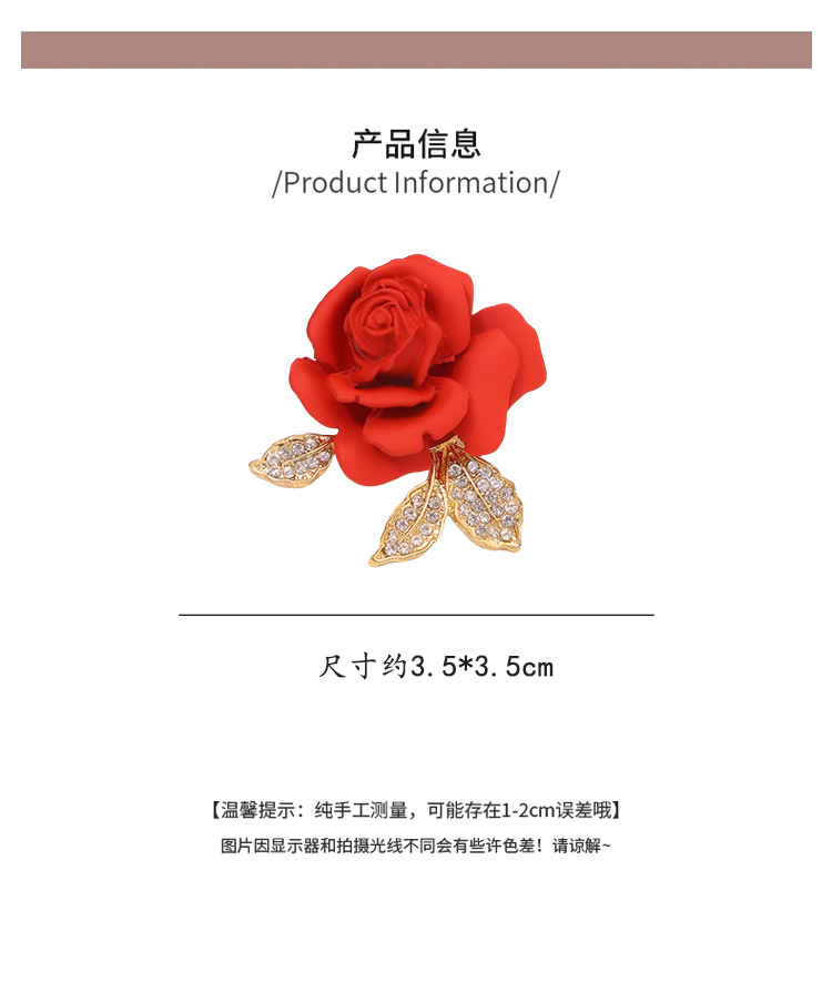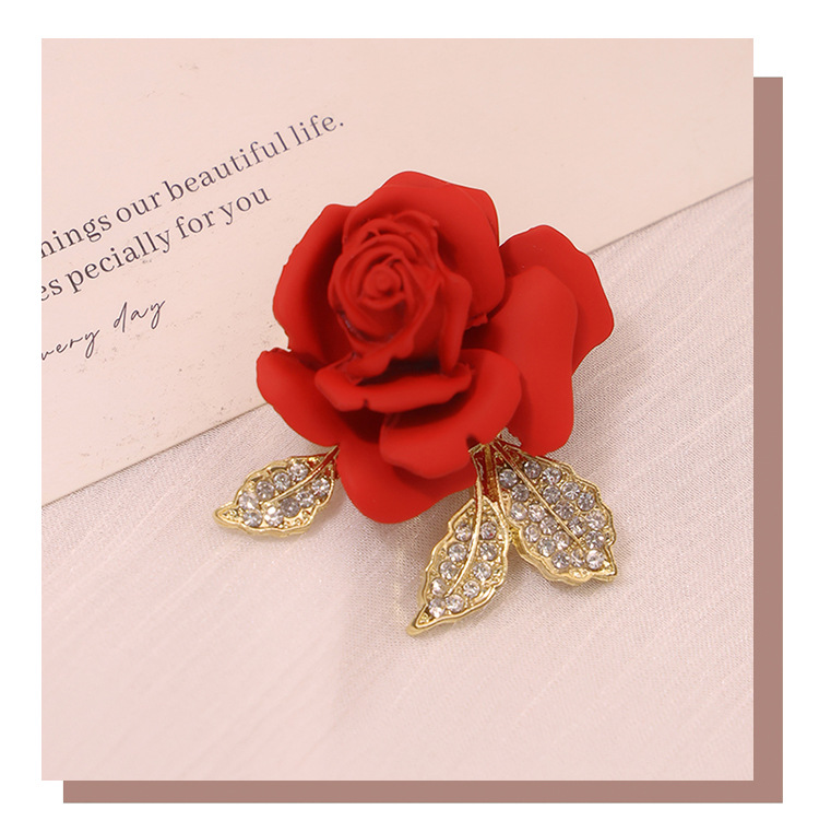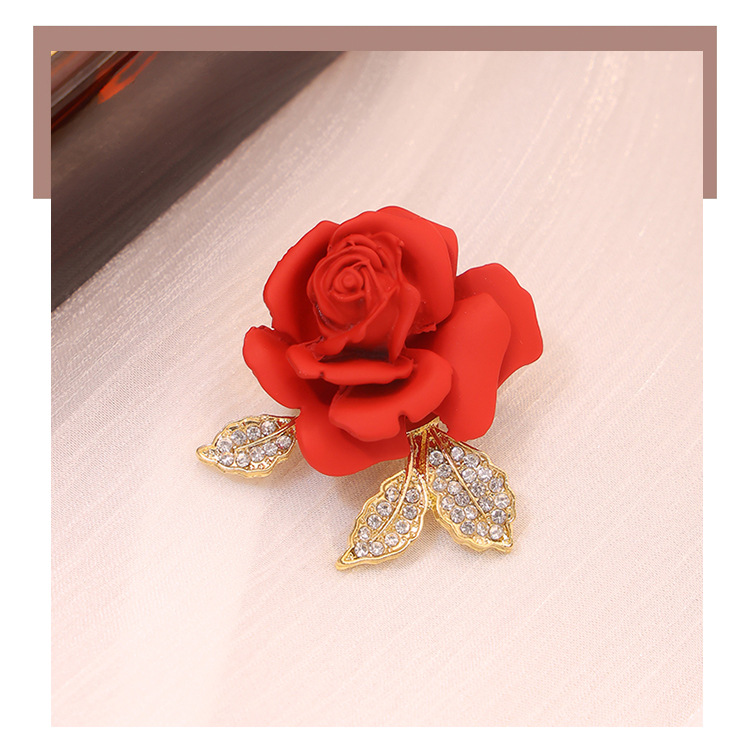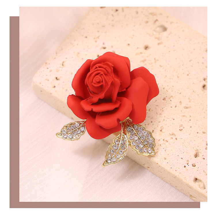 新款亚马逊跨境热卖红色玫瑰花胸针男女配饰大衣胸花别针服饰配件