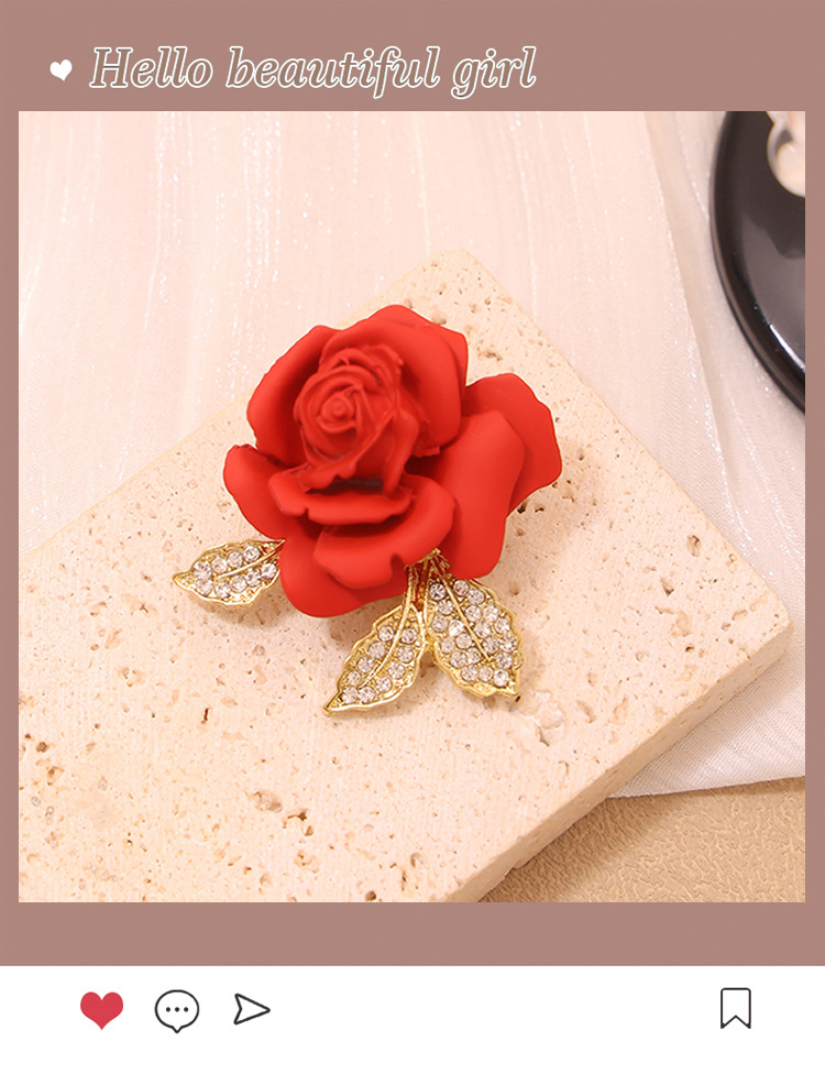2025新款玫瑰花胸针红色大衣西服胸花固定衣服别针高档女时尚配饰
